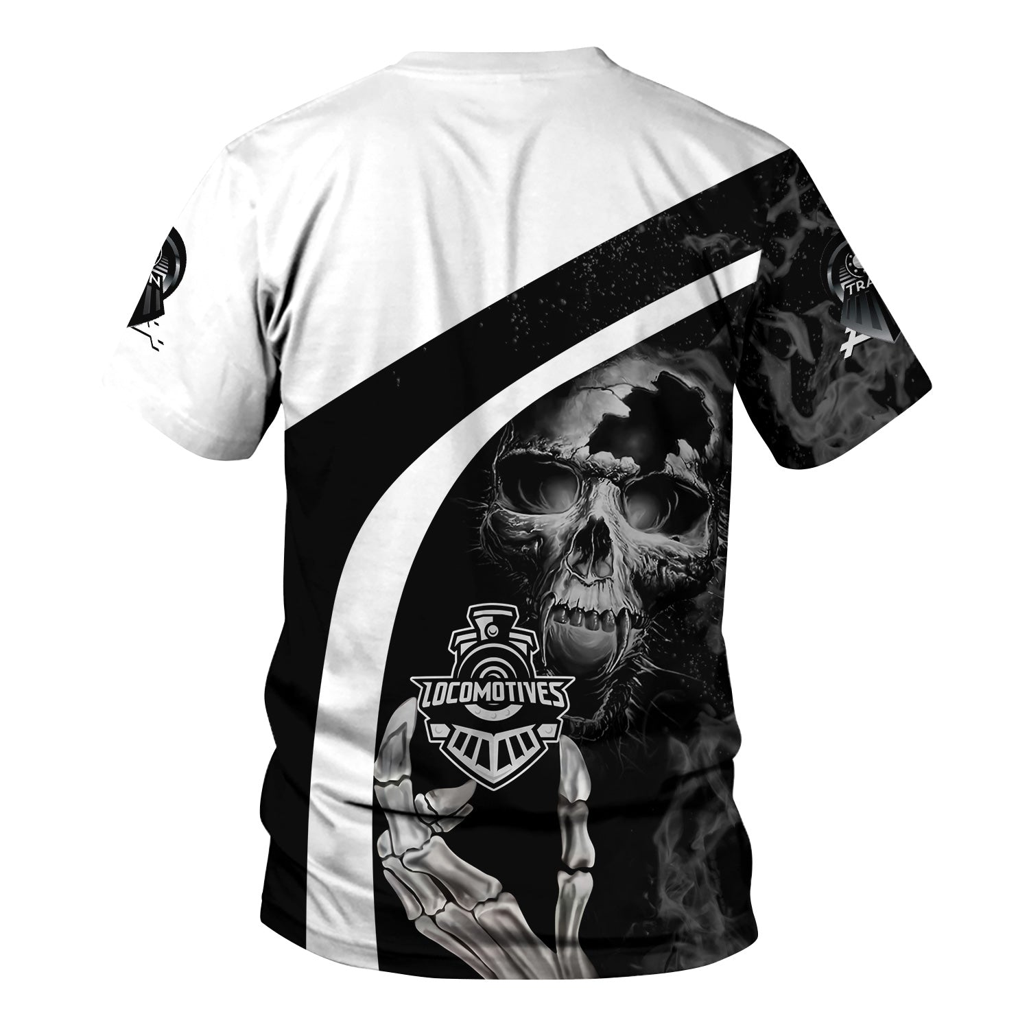 Railspirit Personalized Reading Railroad T-Shirt Flame Skull Design Train Shirt for Locomotive Fans