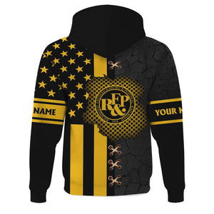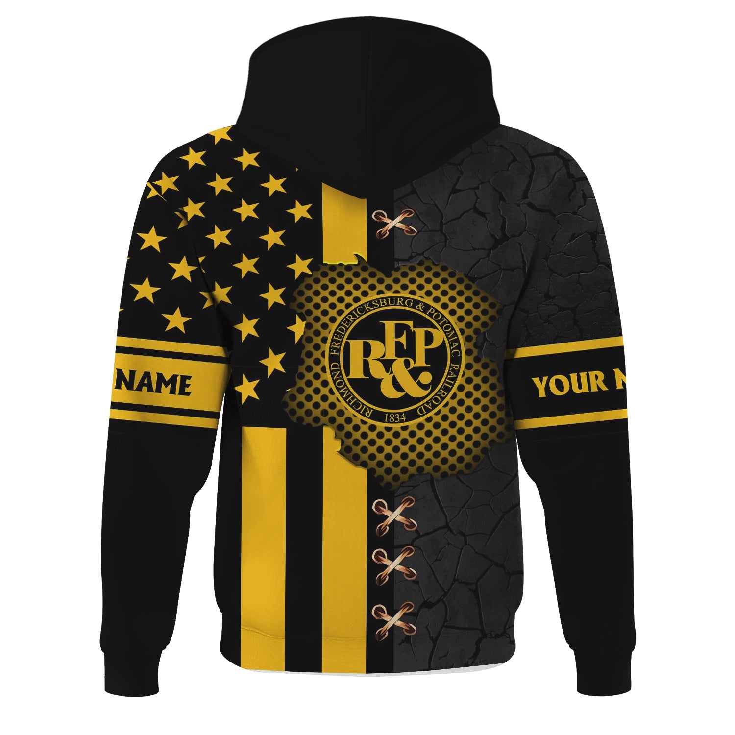 Railspirit Personalized Richmond, Fredericksburg And Potomac Railroad Hoodie American Flag with Crack Effect Train Zip Up Hoodie