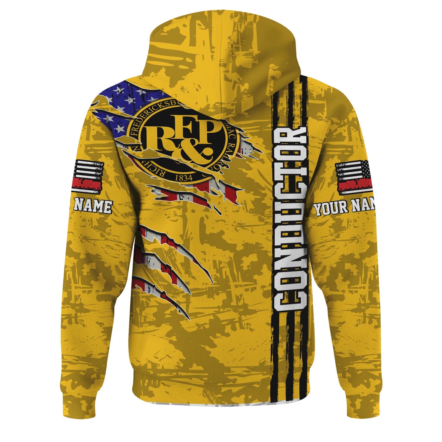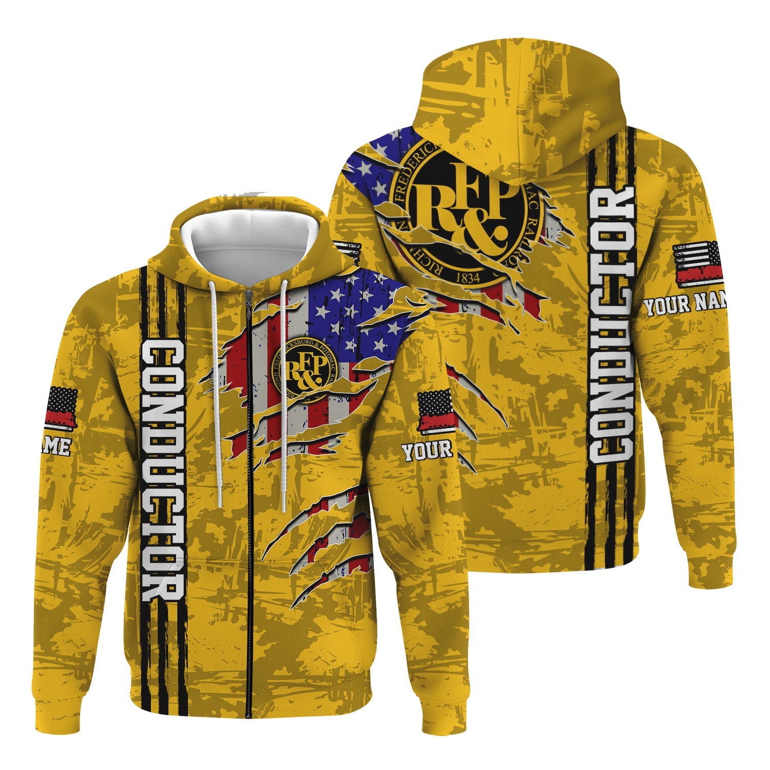 Railspirit Personalized Richmond, Fredericksburg And Potomac Railroad Hoodie USA Flag Claw Art with Custom Job Train Zip Up Hoodie