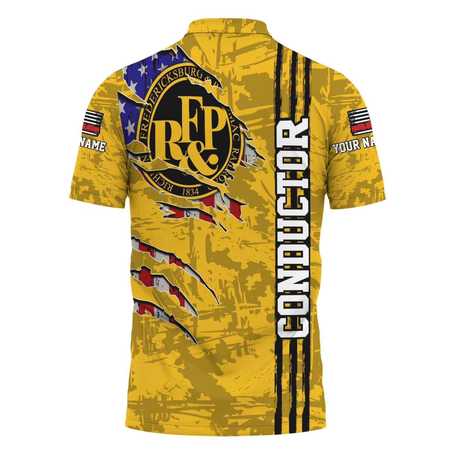 Railspirit Personalized Richmond, Fredericksburg And Potomac Railroad Polo Shirt USA Flag Claw Art with Custom Job Train Shirt