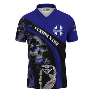 Railspirit Personalized Santa Fe ATSF Railway Polo Shirt Flame Skull Design Atchison, Topeka and Santa Fe Train Shirt for Locomotive Fans