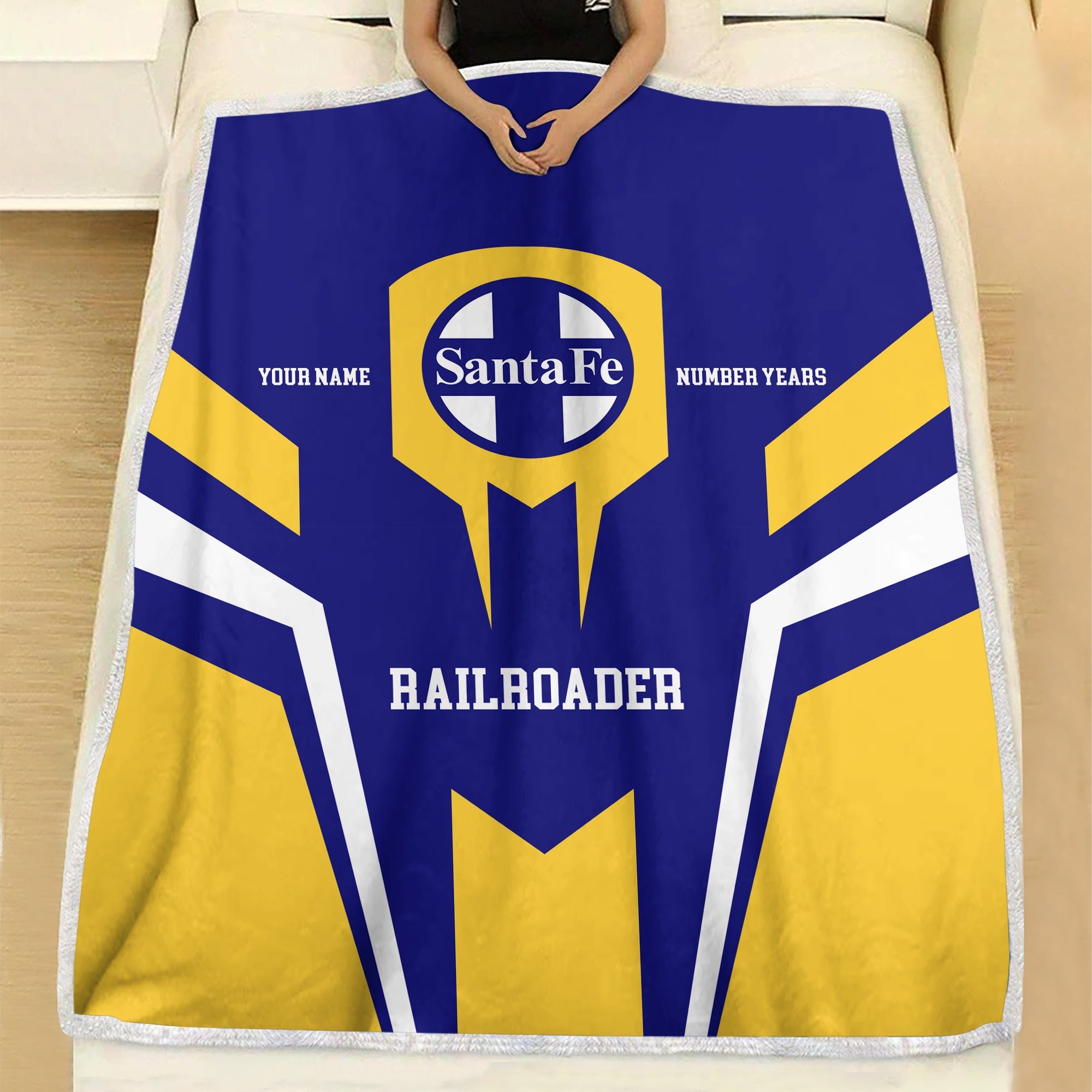 Railspirit Personalized Santa Fe Railway Blanket Custom Year Railroader Atchison, Topeka and Santa Fe Railway Gift Idea For Train Lover