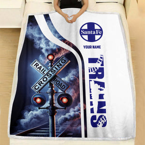 Railspirit Personalized Santa Fe Railway Blanket Railroad Crossing Sign Atchison, Topeka and Santa Fe Railway Blanket All Over Print