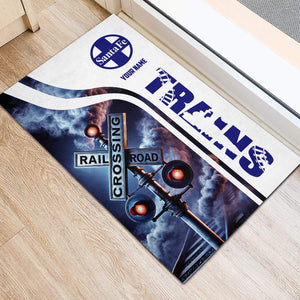 Railspirit Personalized Santa Fe Railway Doormat Railroad Crossing Sign Atchison, Topeka and Santa Fe Railway Mat All Over Print