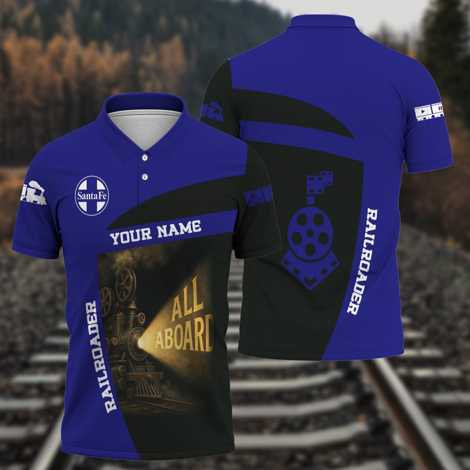 Railspirit Personalized Santa Fe Railway Polo Shirt All Aboard Steam Train Movie Projector Style Atchison, Topeka and Santa Fe Railway Shirt