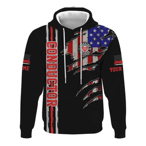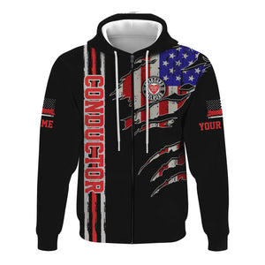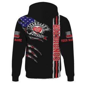 Railspirit Personalized Seaboard Air Line Railroad Hoodie USA Flag Claw Art with Custom Job Train Zip Up Hoodie