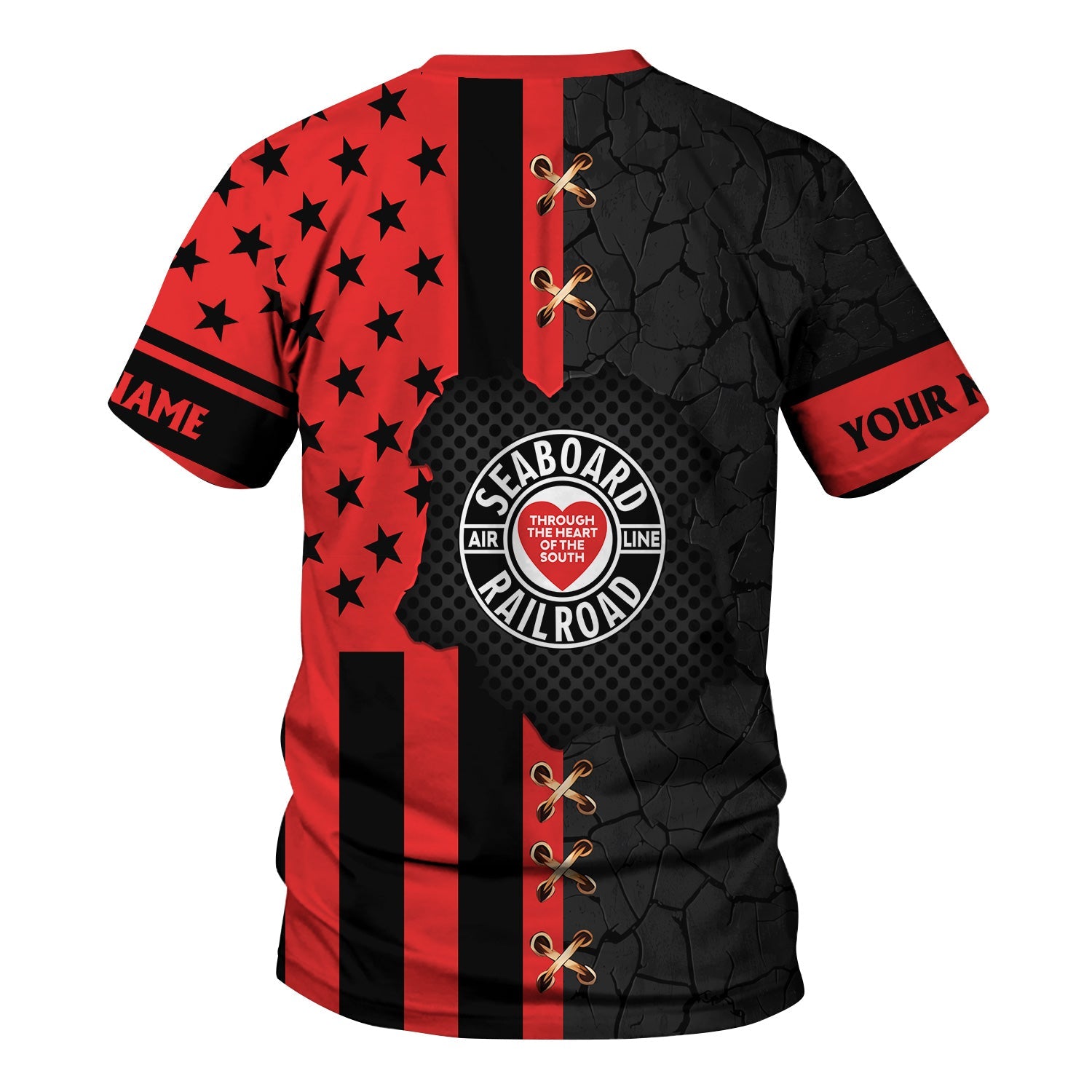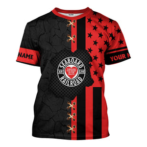 Railspirit Personalized Seaboard Air Line Railroad T-Shirt American Flag with Crack Effect Train Shirt