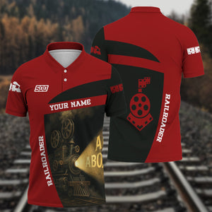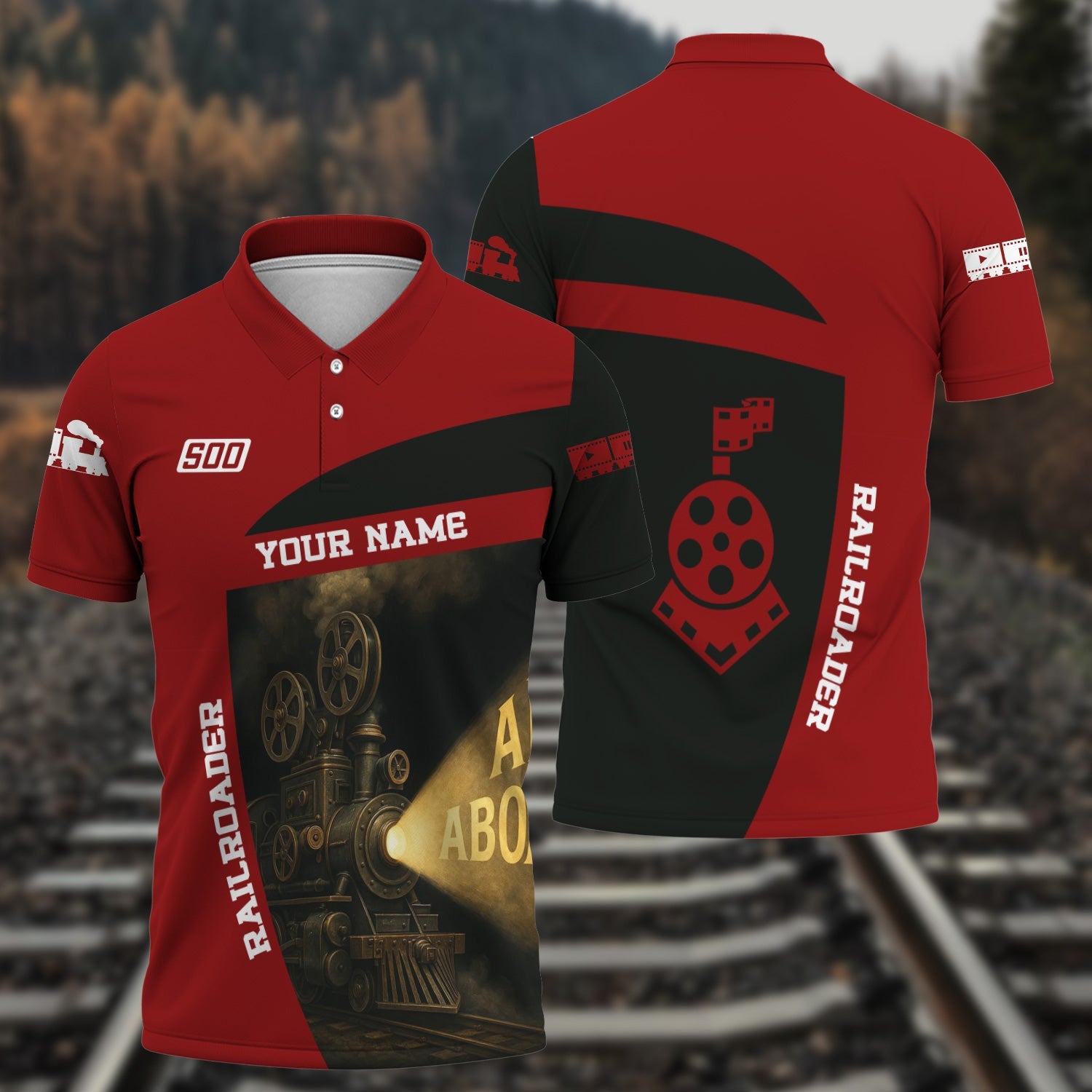 Railspirit Personalized Soo Line Railroad Polo Shirt All Aboard Steam Train Movie Projector Style Shirt