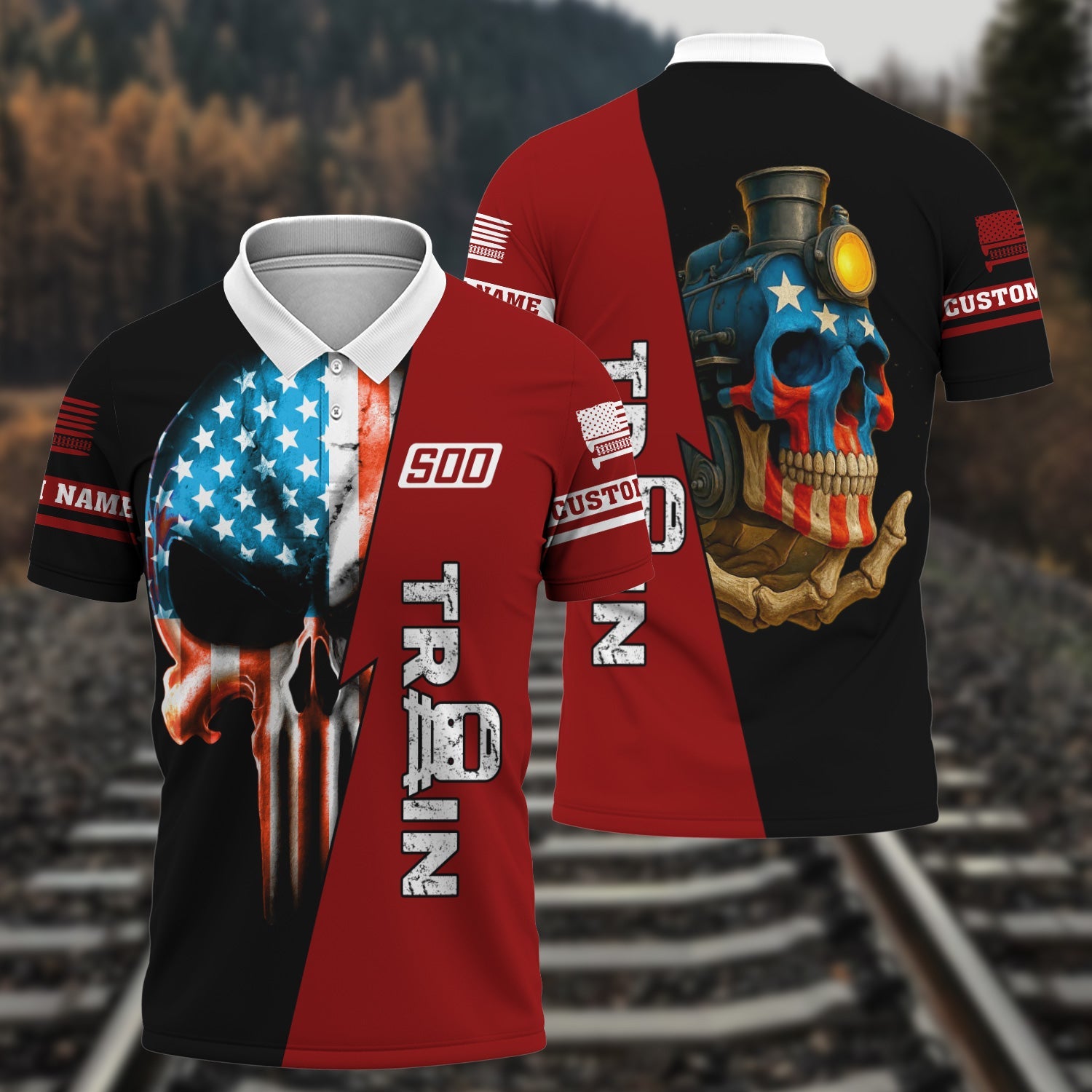 Railspirit Personalized Soo Line Railroad Polo Shirt Train Skull American Flag Shirt All Over Print