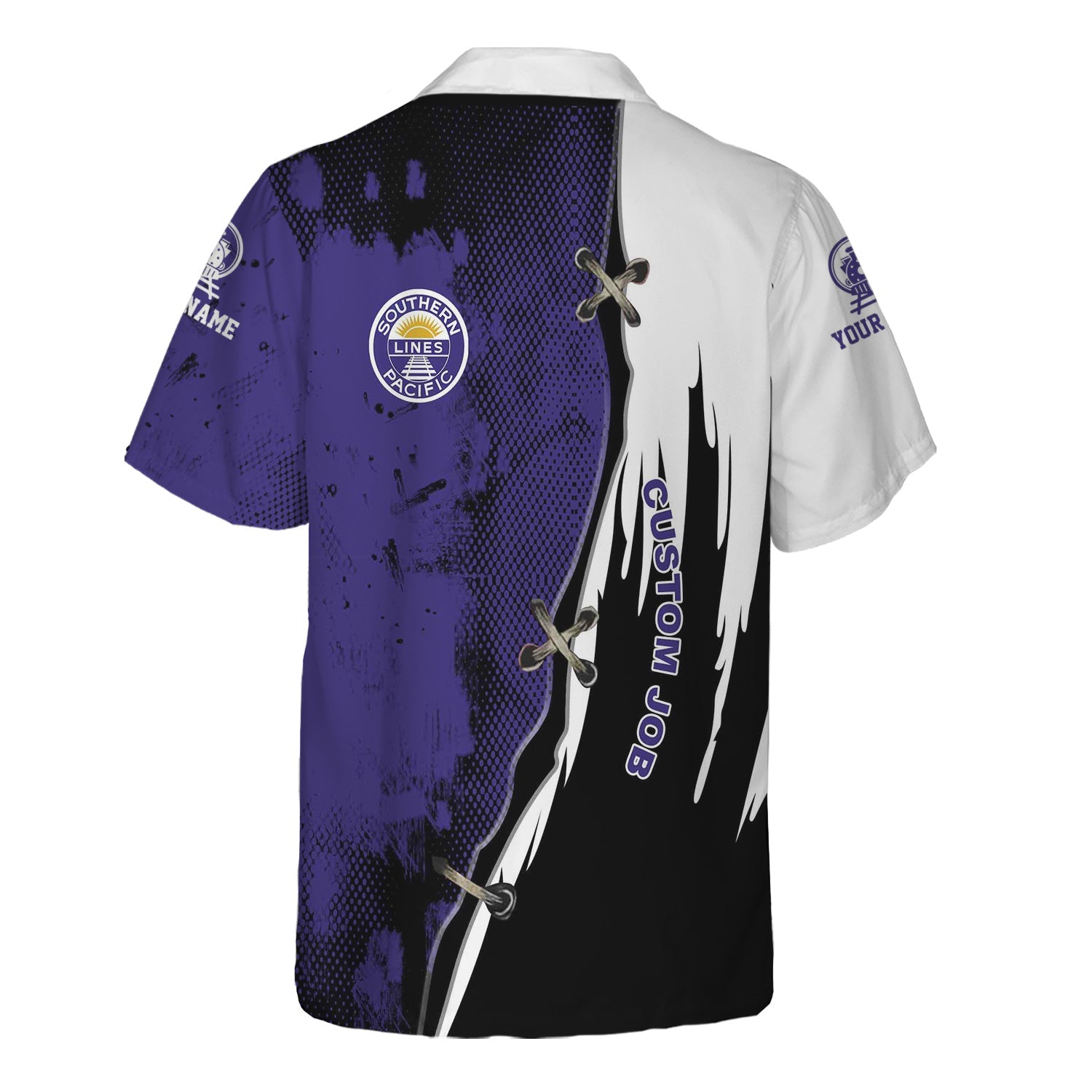 Railspirit Personalized Southern Pacific Railroad Hawaiian Shirt Retro Stitches Design with Custom Position Train Shirt