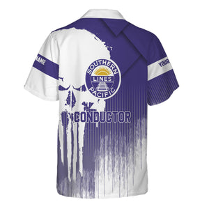 Railspirit Personalized Southern Pacific Railroad Hawaiian Shirt Skull Design with Custom Job Train Shirt for Trackhead Crew