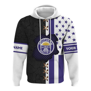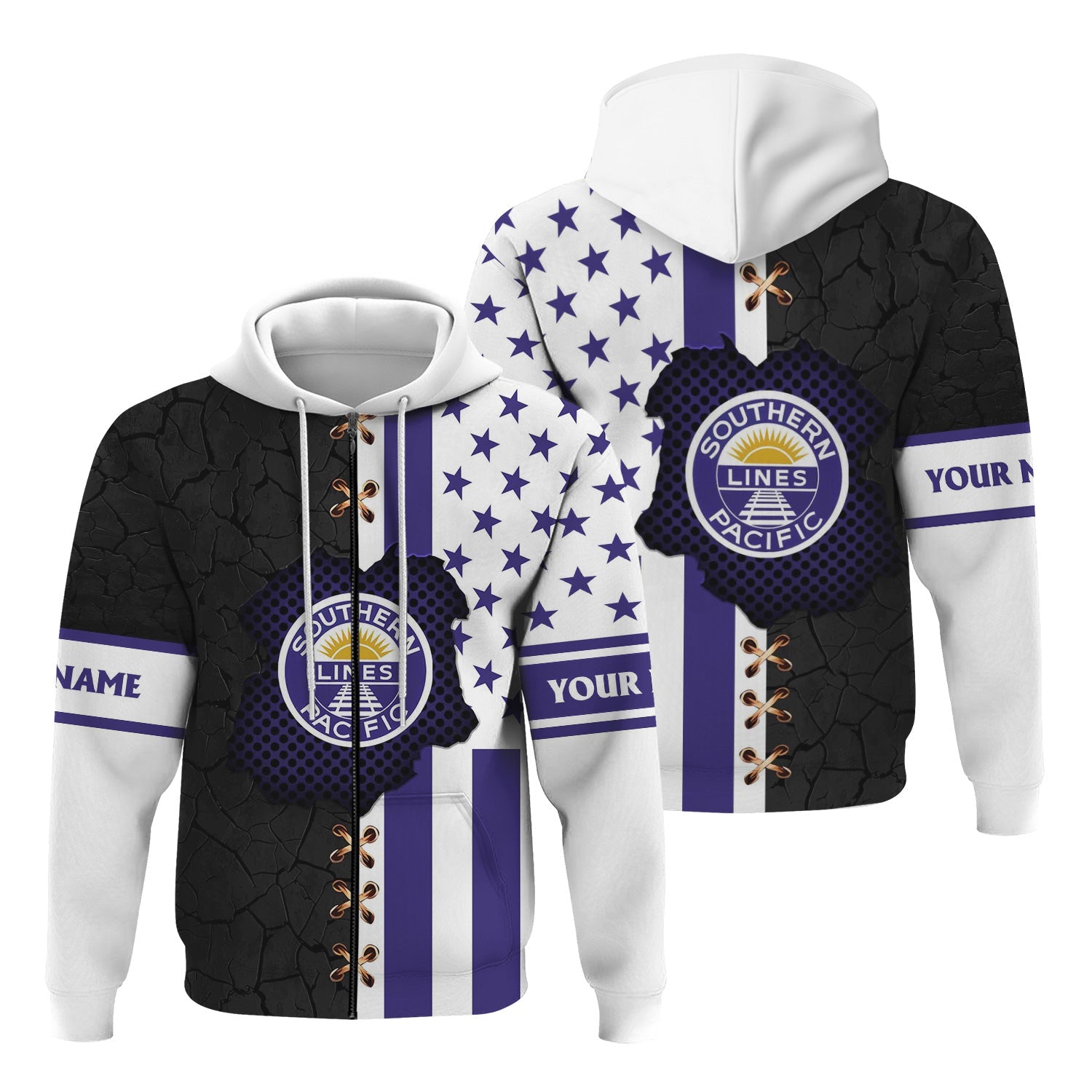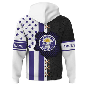 Railspirit Personalized Southern Pacific Railroad Hoodie American Flag with Crack Effect Train Zip Up Hoodie