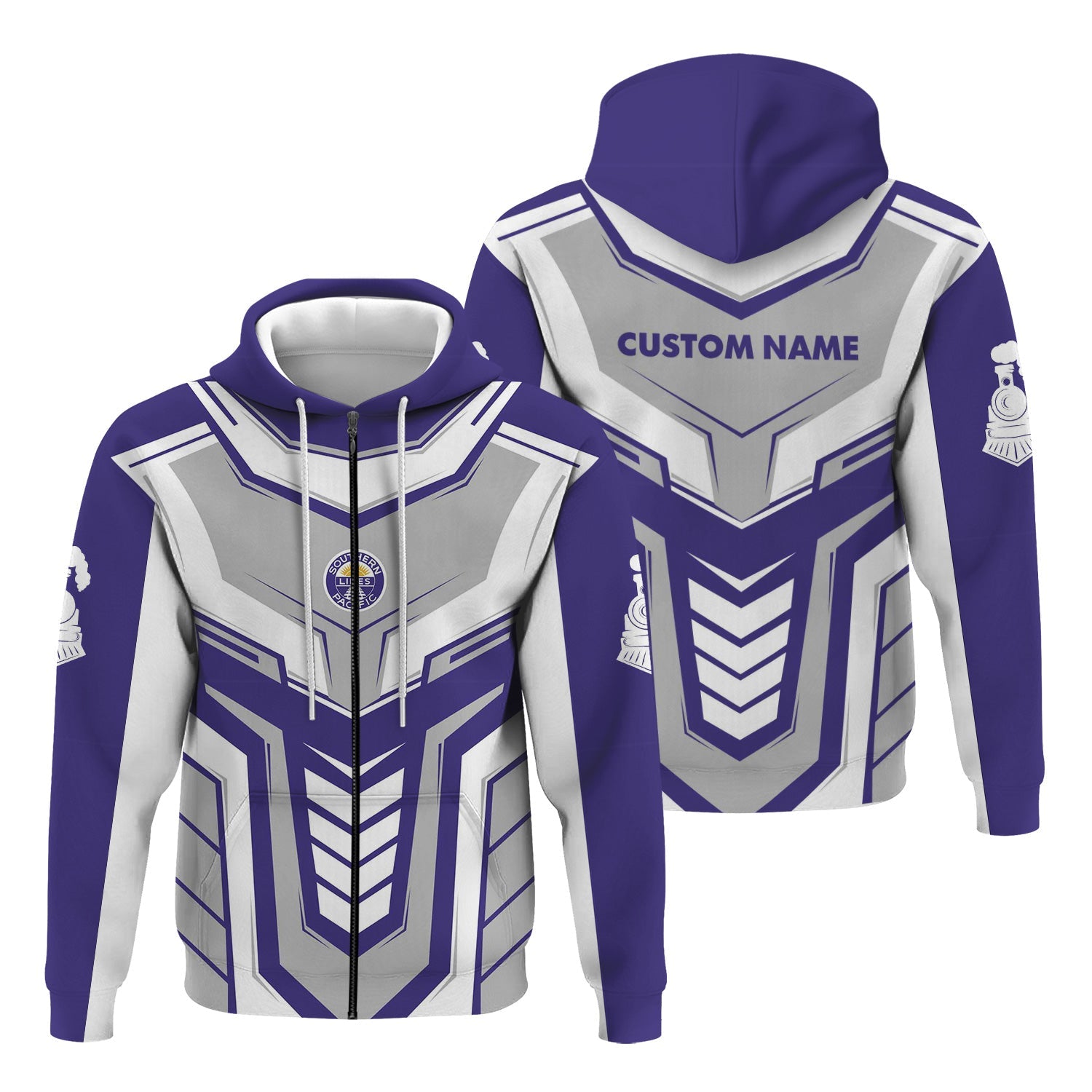 Railspirit Personalized Southern Pacific Railroad Hoodie Armor-Inspired Design Train Zip Up Hoodie All Over Print