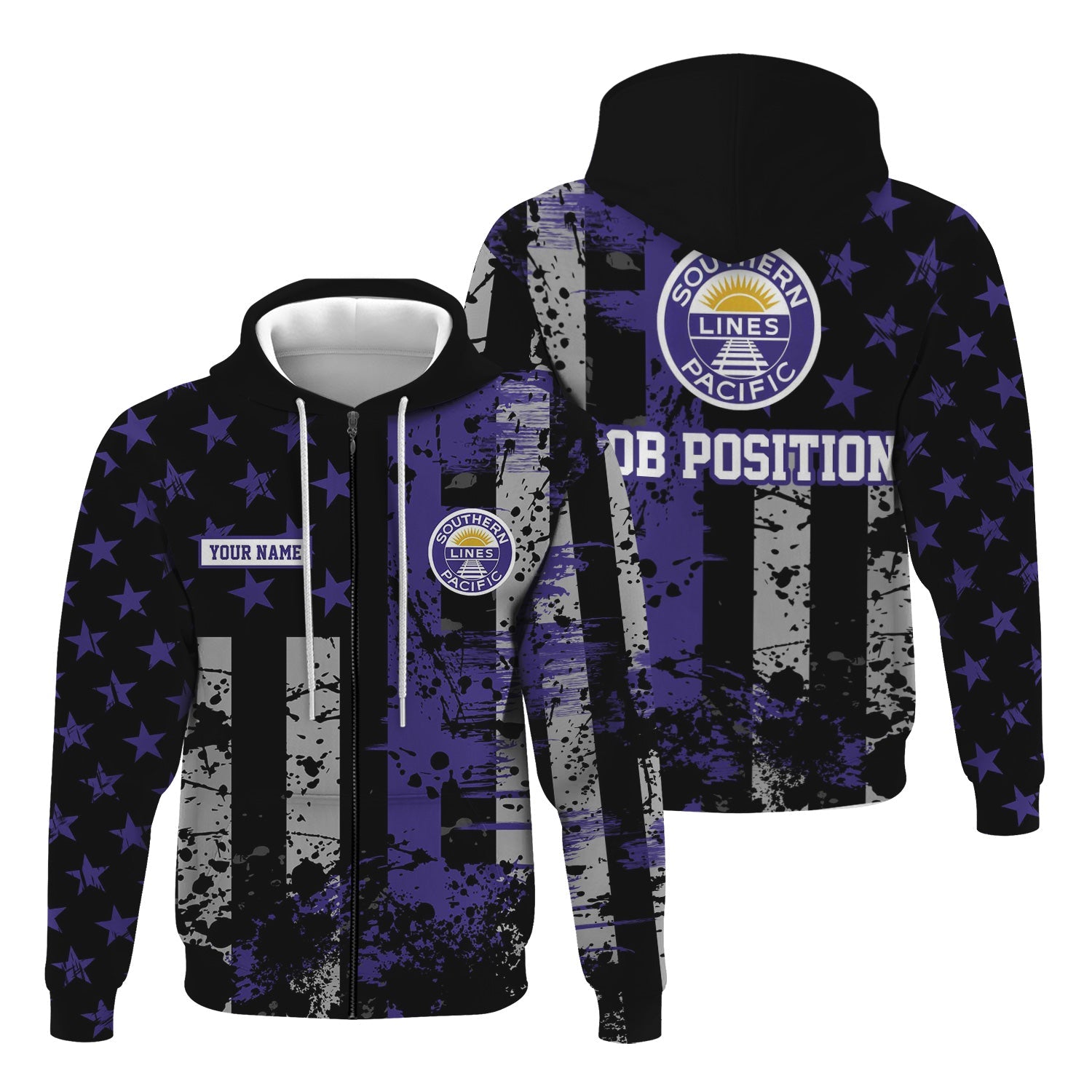 Railspirit Personalized Southern Pacific Railroad Hoodie Artistic Paint American Flag Style Train Zip Up Hoodie
