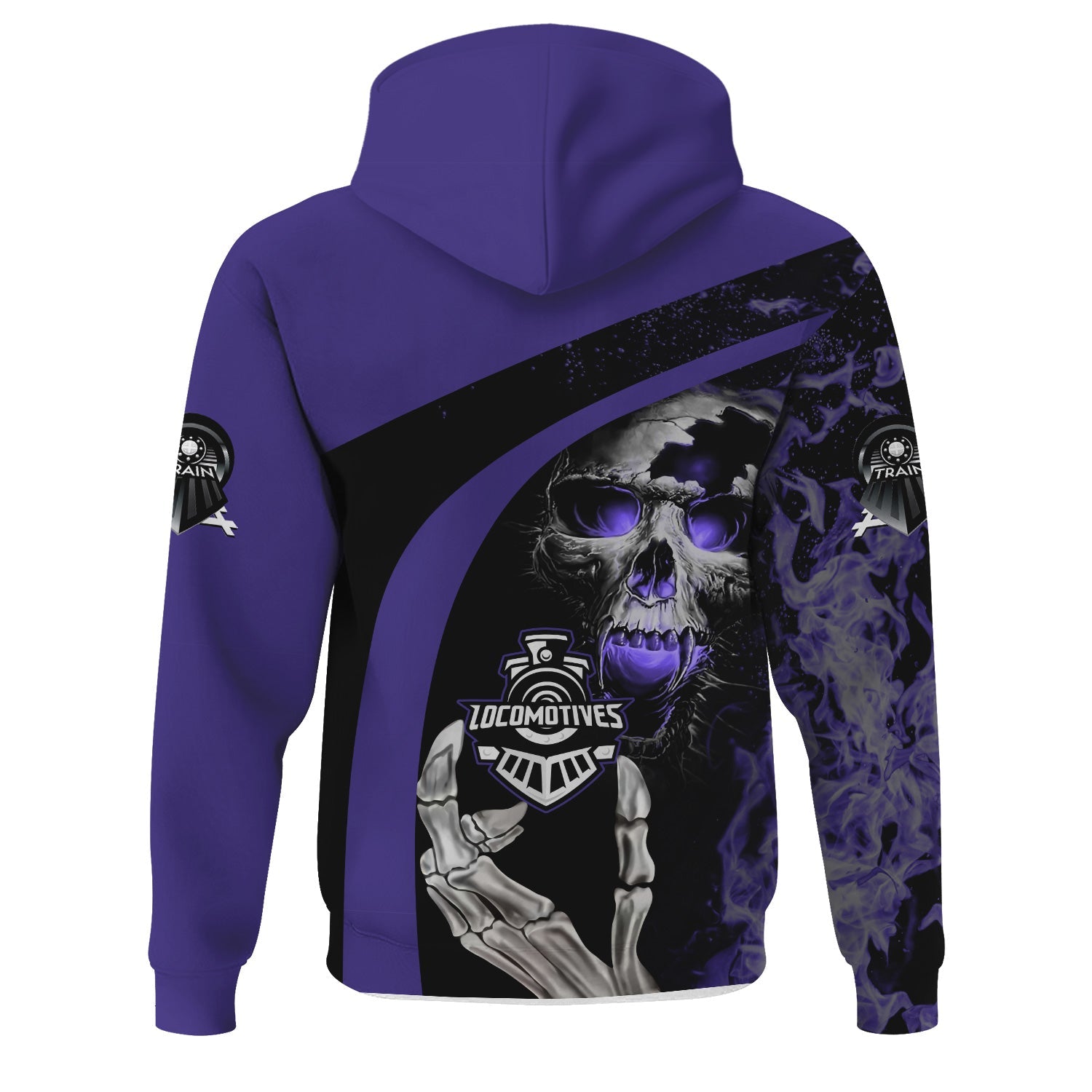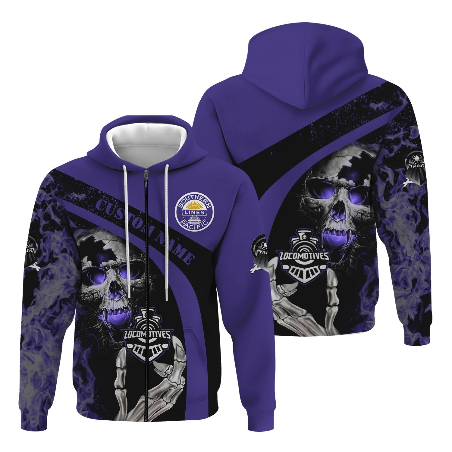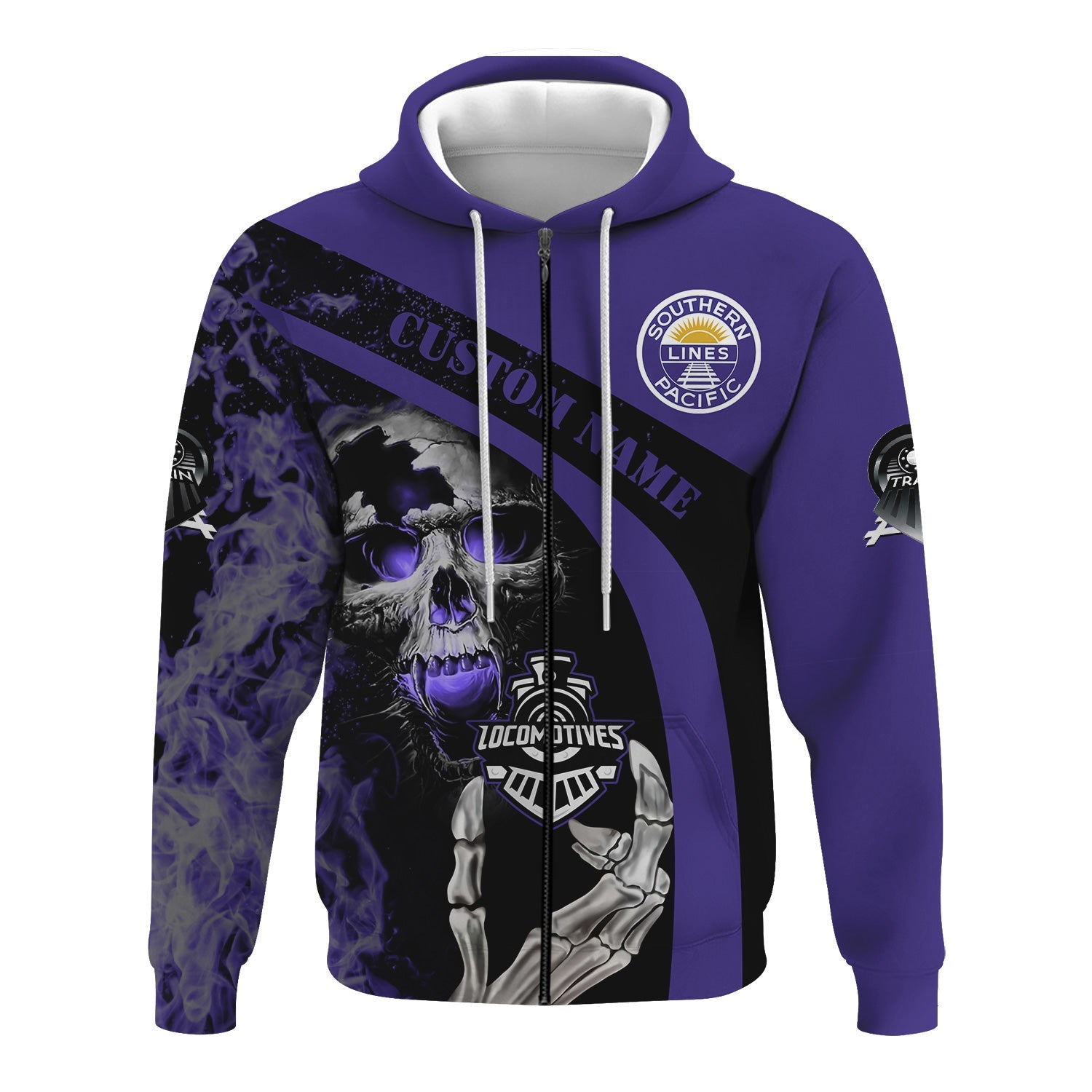 Railspirit Personalized Southern Pacific Railroad Hoodie Flame Skull Design Train Zip Up Hoodie for Locomotive Fans