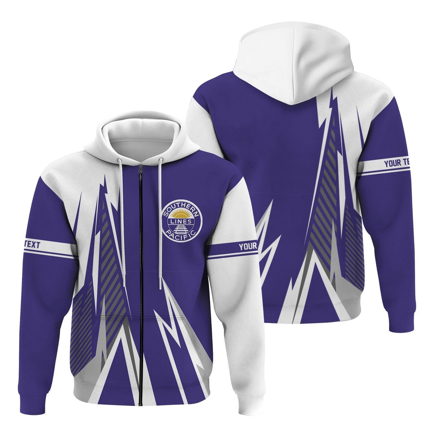 Railspirit Personalized Southern Pacific Railroad Hoodie Lightning-Inspired Railway Style Zip Up Hoodie For Train Lovers