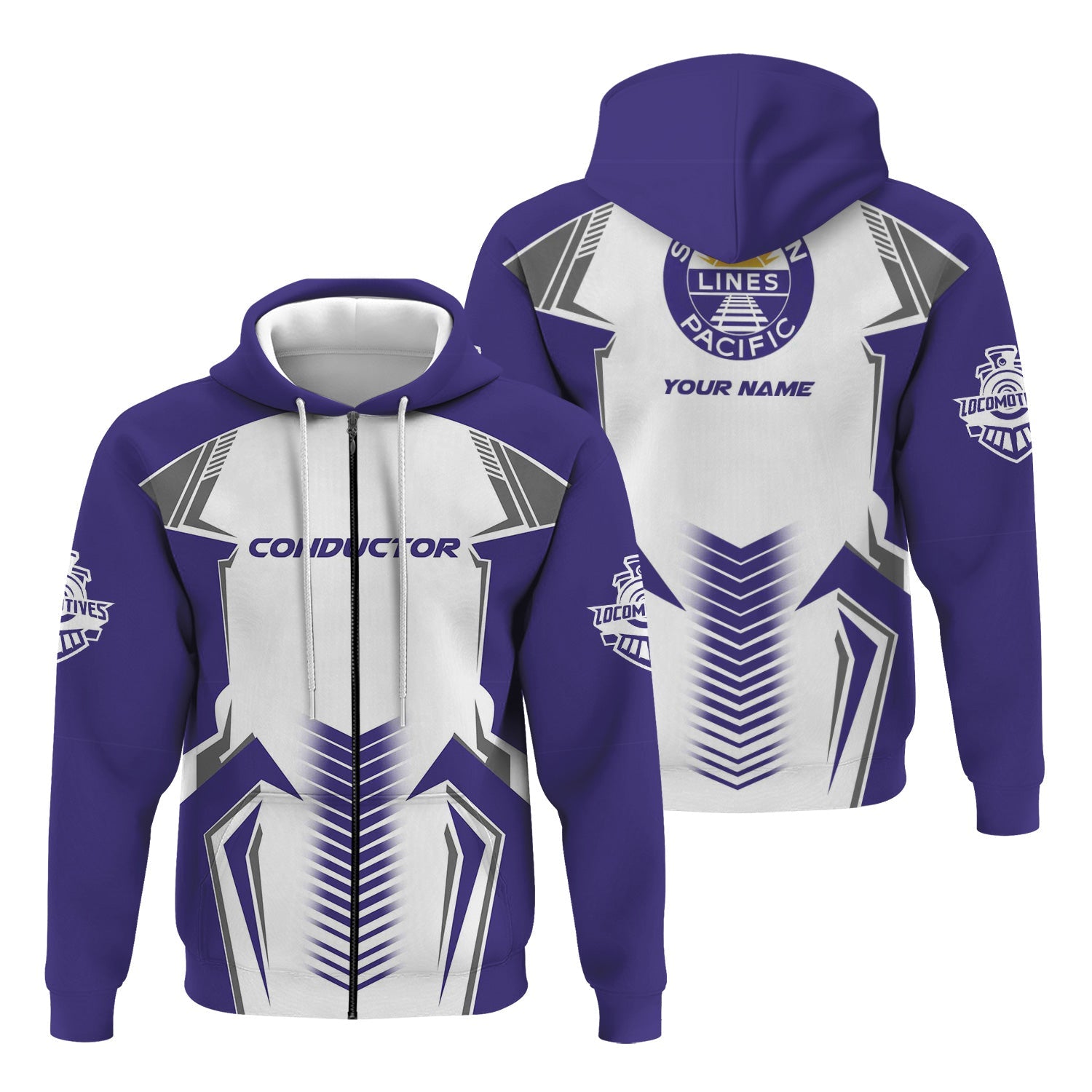 Railspirit Personalized Southern Pacific Railroad Hoodie Standout Style with Custom Position Train Zip Up Hoodie