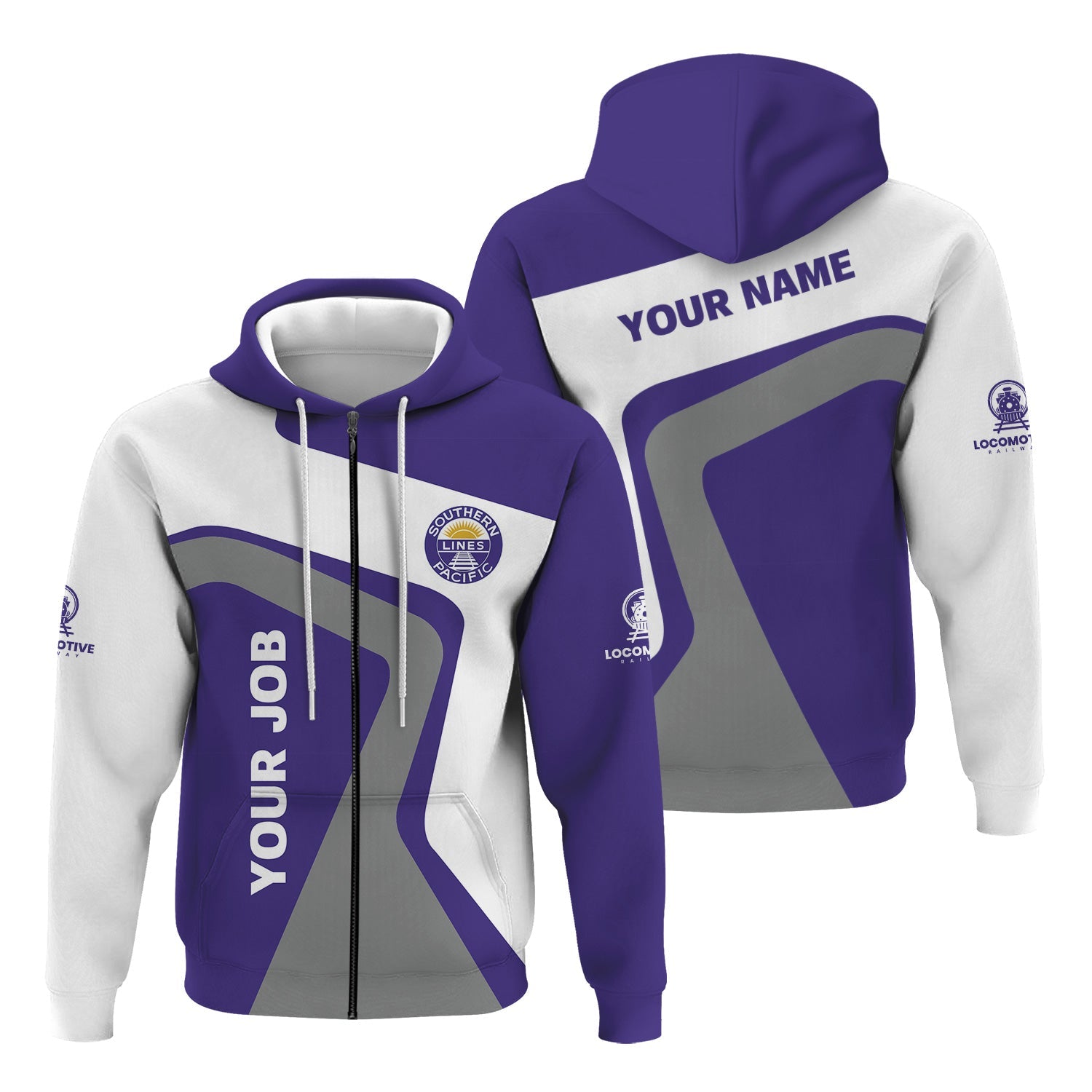Railspirit Personalized Southern Pacific Railroad Hoodie Unique Design with Custom Job Position Train Zip Up Hoodie