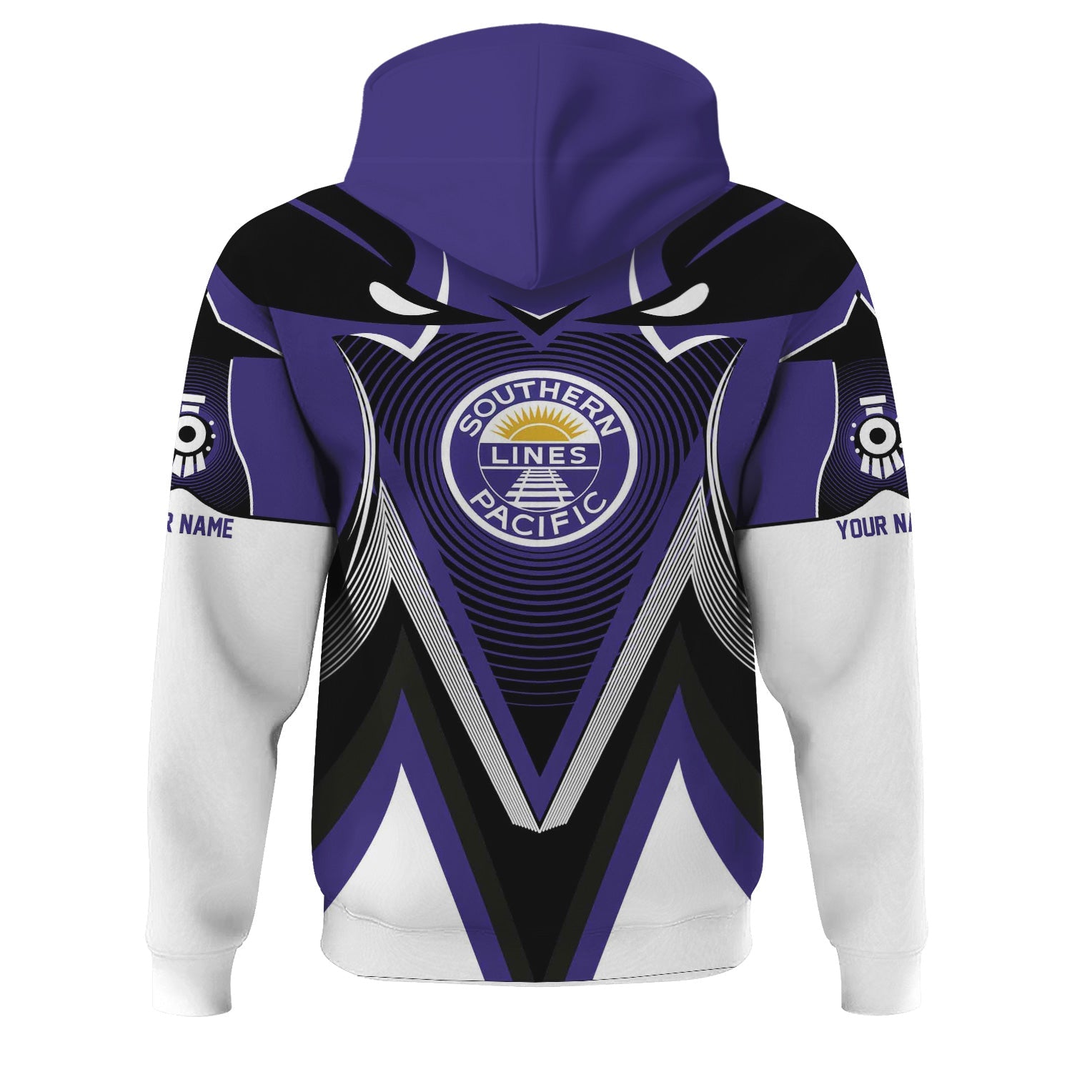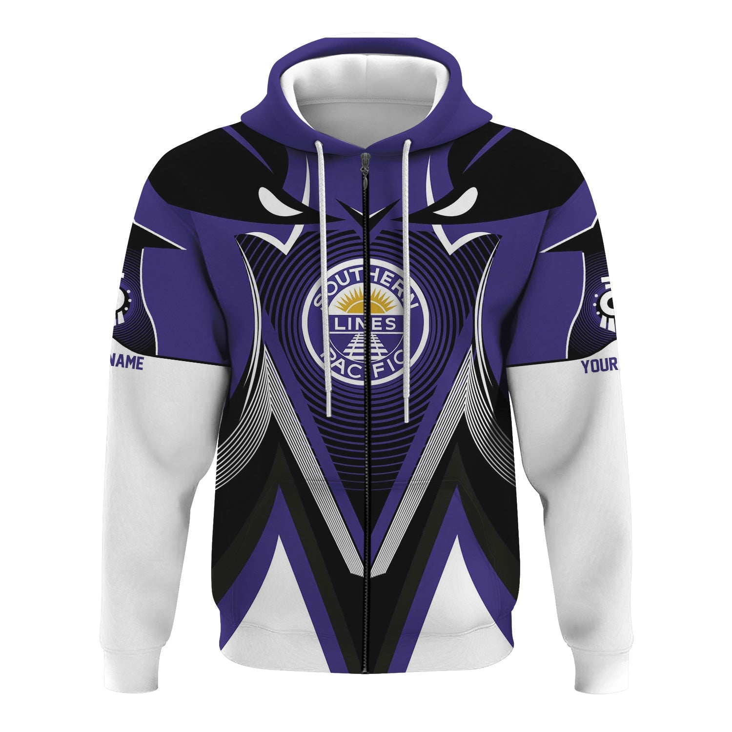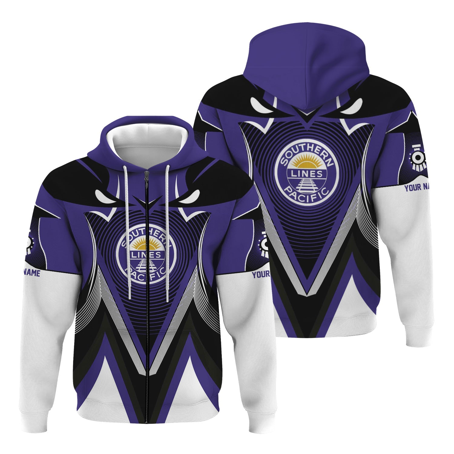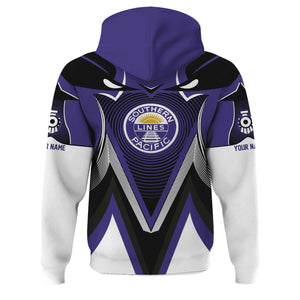Railspirit Personalized Southern Pacific Railroad Hoodie Vibrant Graphic Pattern Zip Up Hoodie For Train Enthusiasts