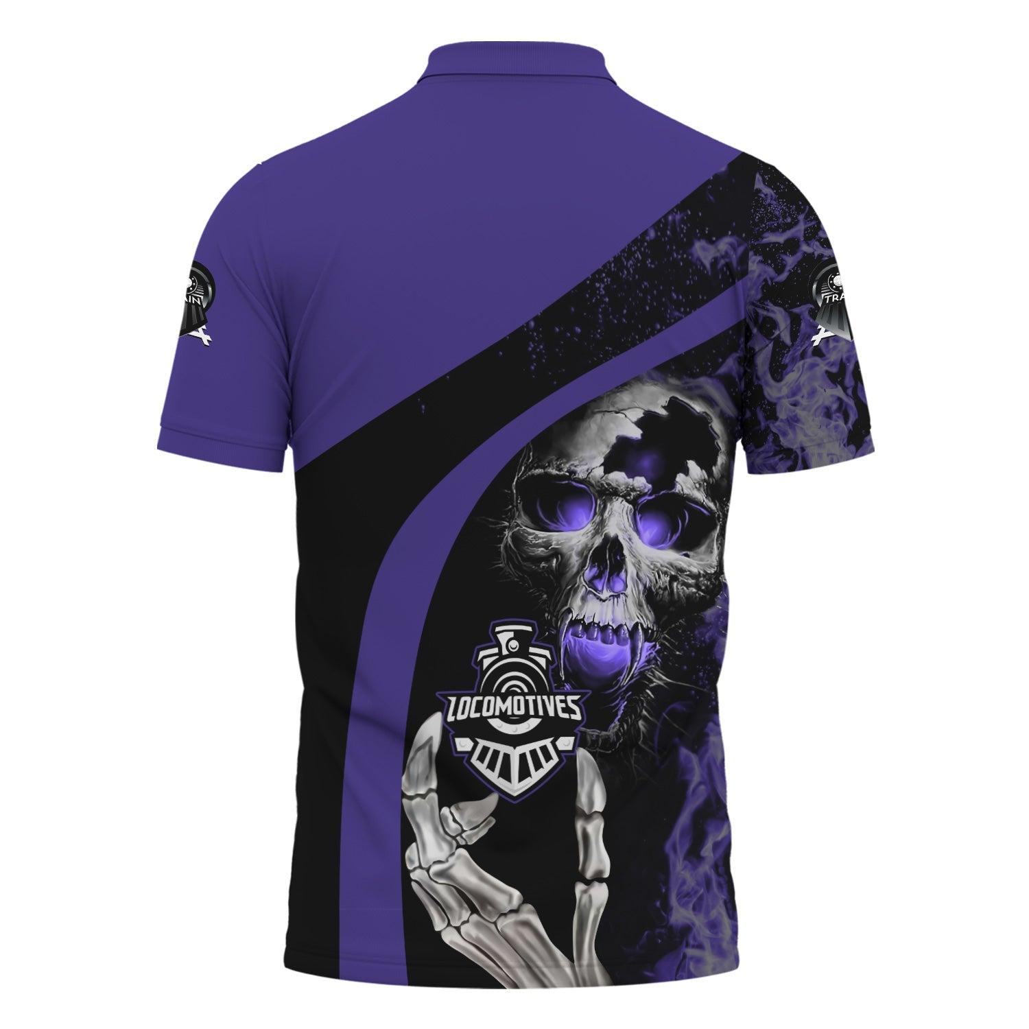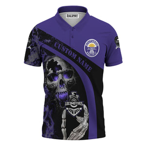 Railspirit Personalized Southern Pacific Railroad Polo Shirt Flame Skull Design Train Shirt for Locomotive Fans