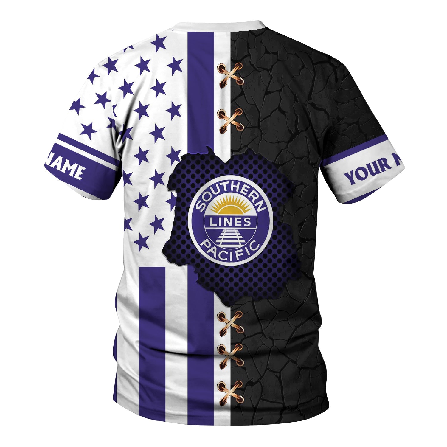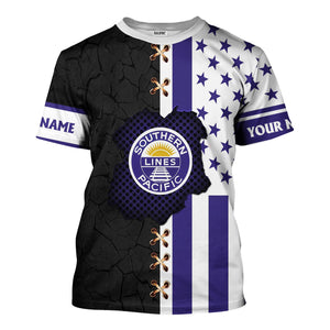 Railspirit Personalized Southern Pacific Railroad T-Shirt American Flag with Crack Effect Train Shirt