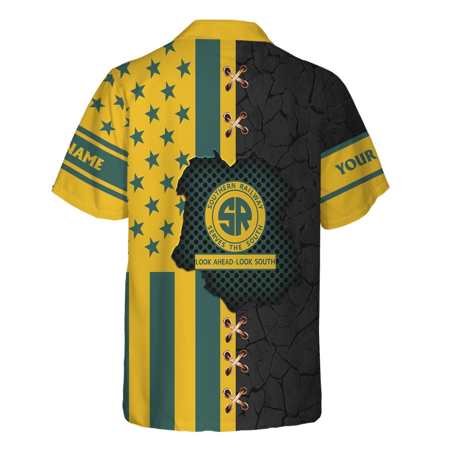 Railspirit Personalized Southern Railway U.S Hawaiian Shirt American Flag with Crack Effect SOU Train Shirt