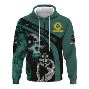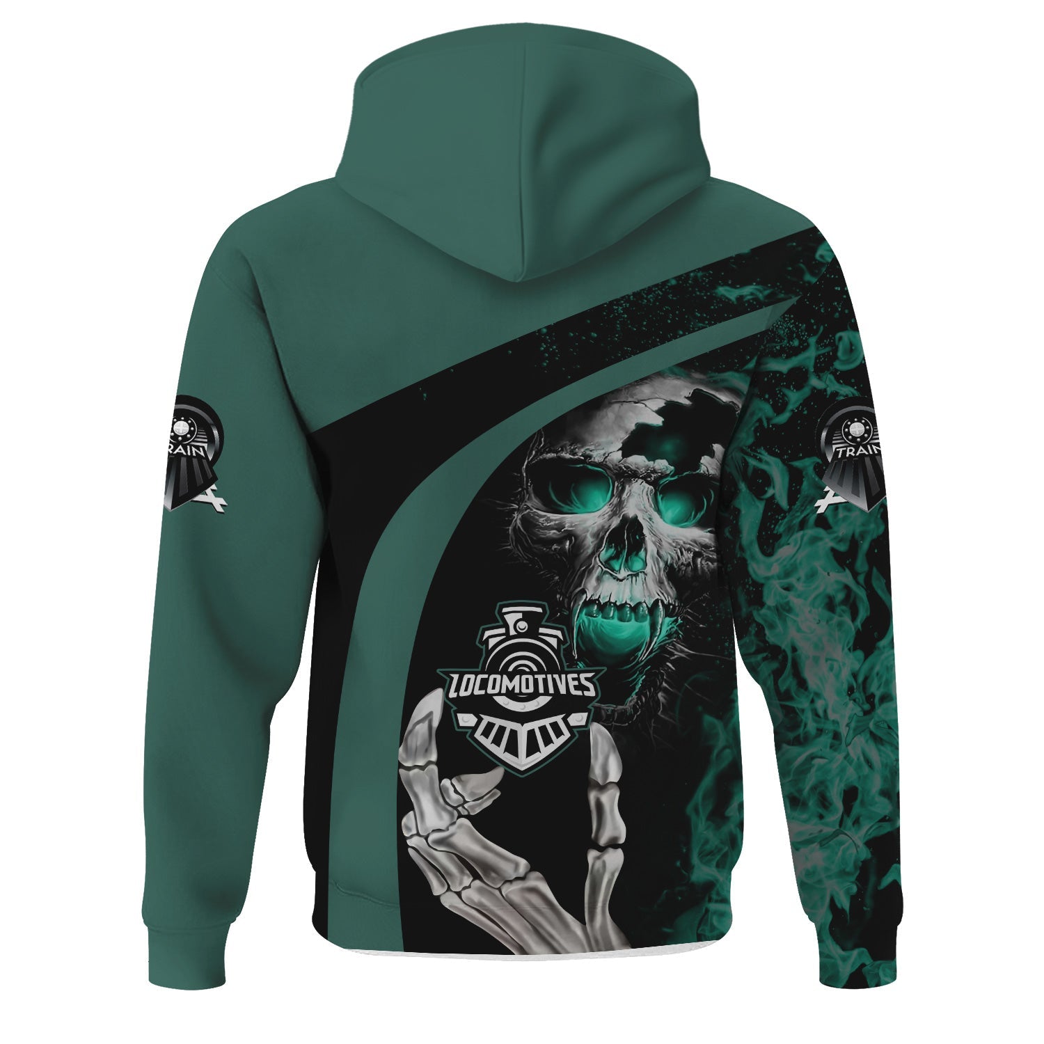 Railspirit Personalized Southern Railway U.S Hoodie Flame Skull Design SOU Train Zip Up Hoodie for Locomotive Fans