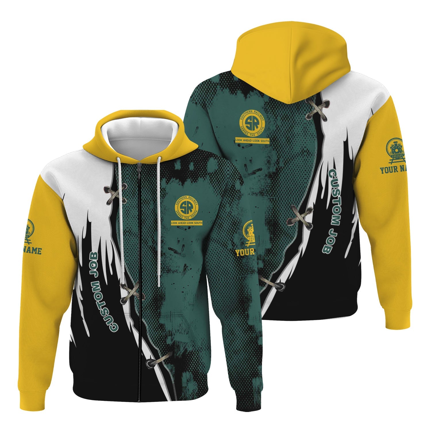 Railspirit Personalized Southern Railway U.S Hoodie Retro Stitches Design with Custom Position SOU Train Zip Up Hoodie