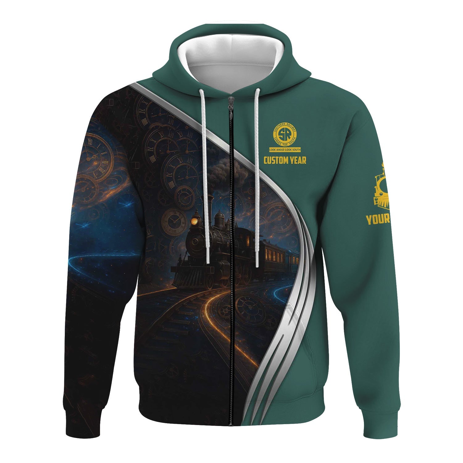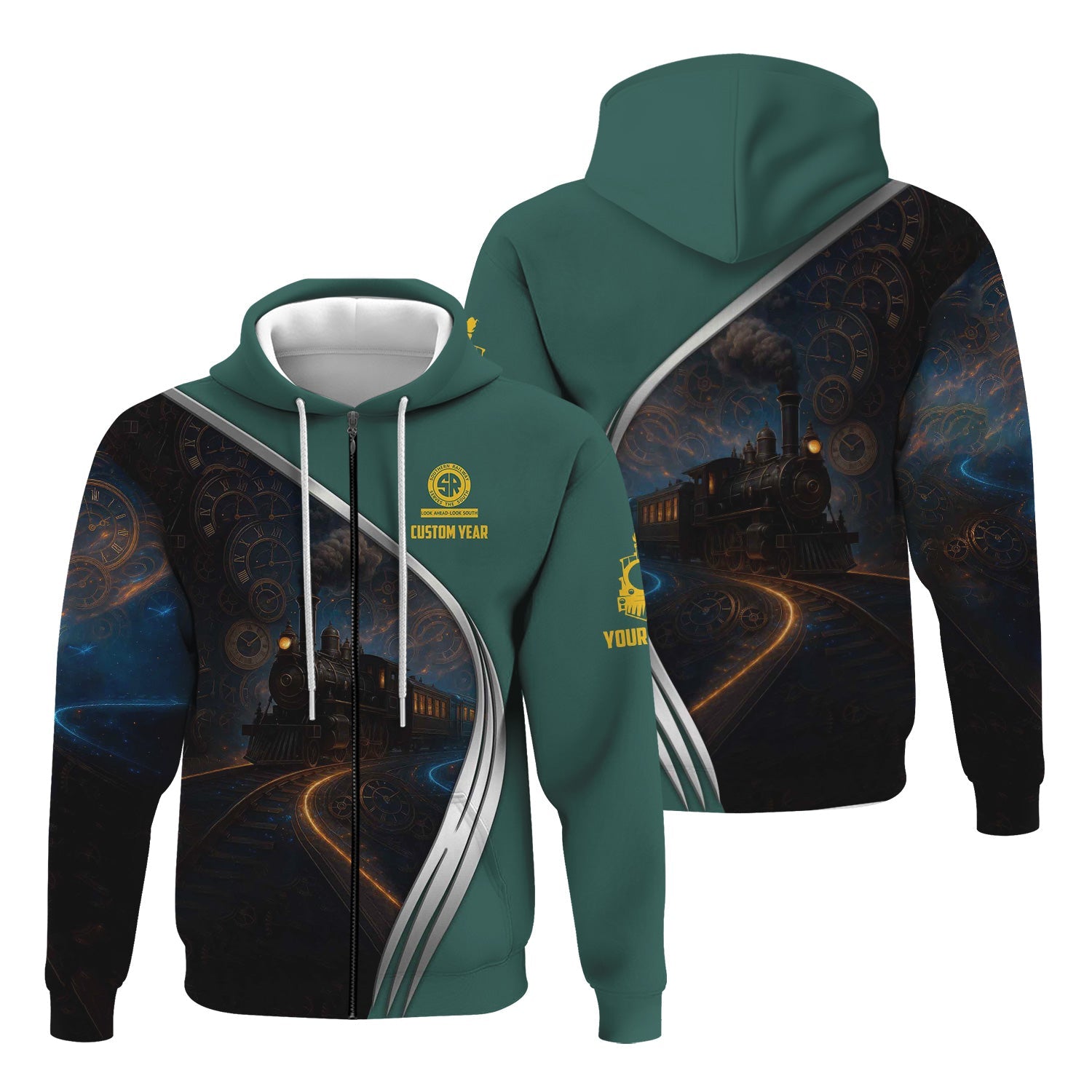 Railspirit Personalized Southern Railway U.S Hoodie Steampunk Locomotive with Custom Year SOU Train Zip Up Hoodie