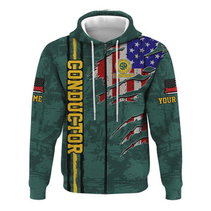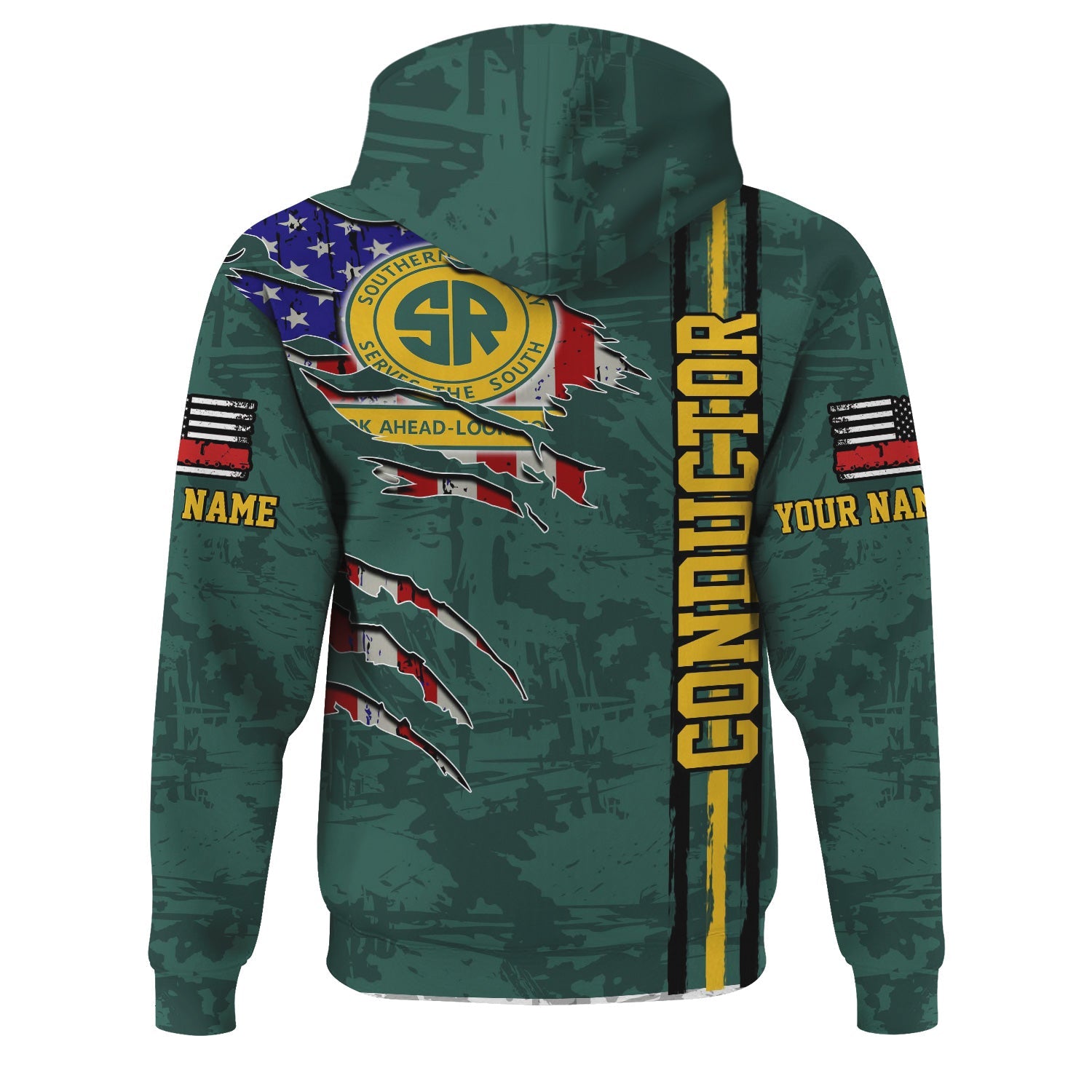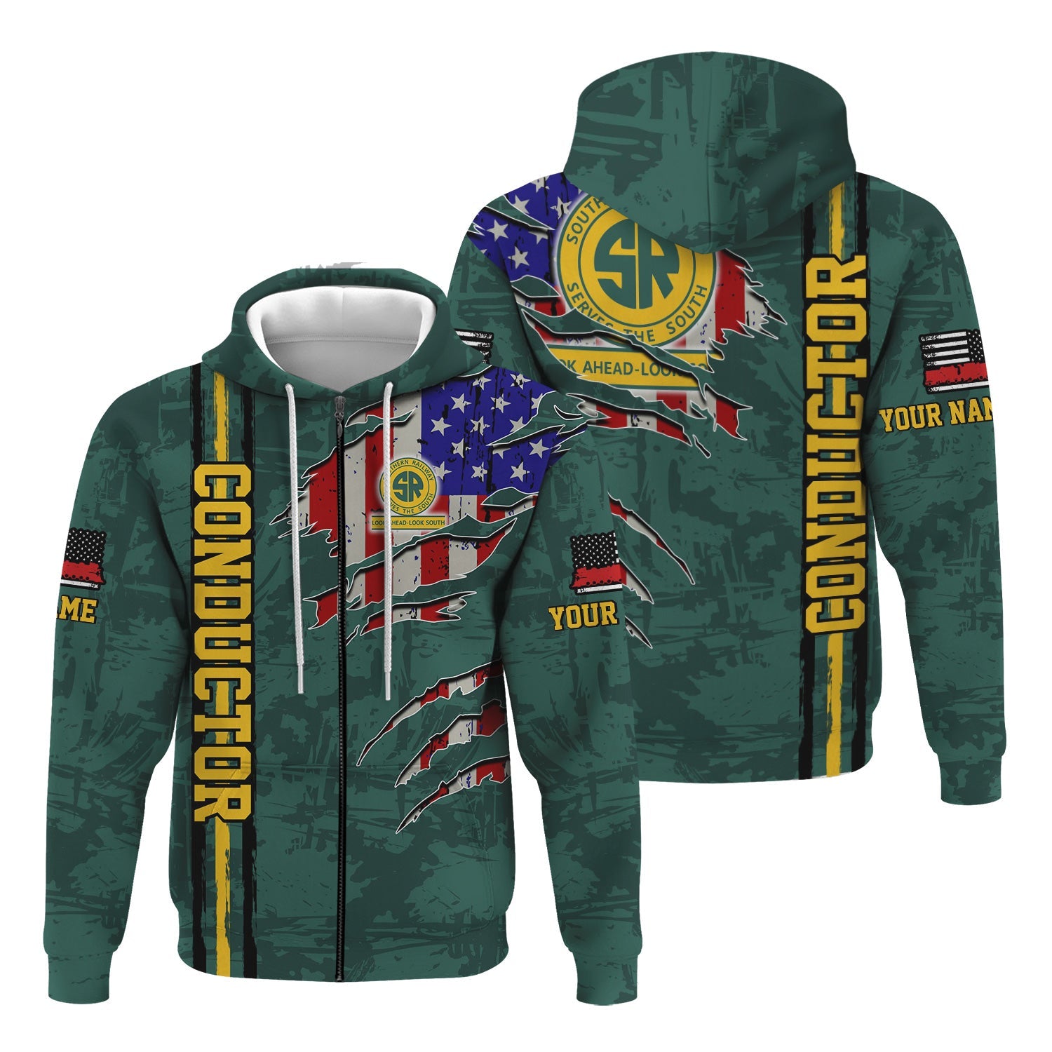 Railspirit Personalized Southern Railway U.S Hoodie USA Flag Claw Art with Custom Job SOU Train Zip Up Hoodie