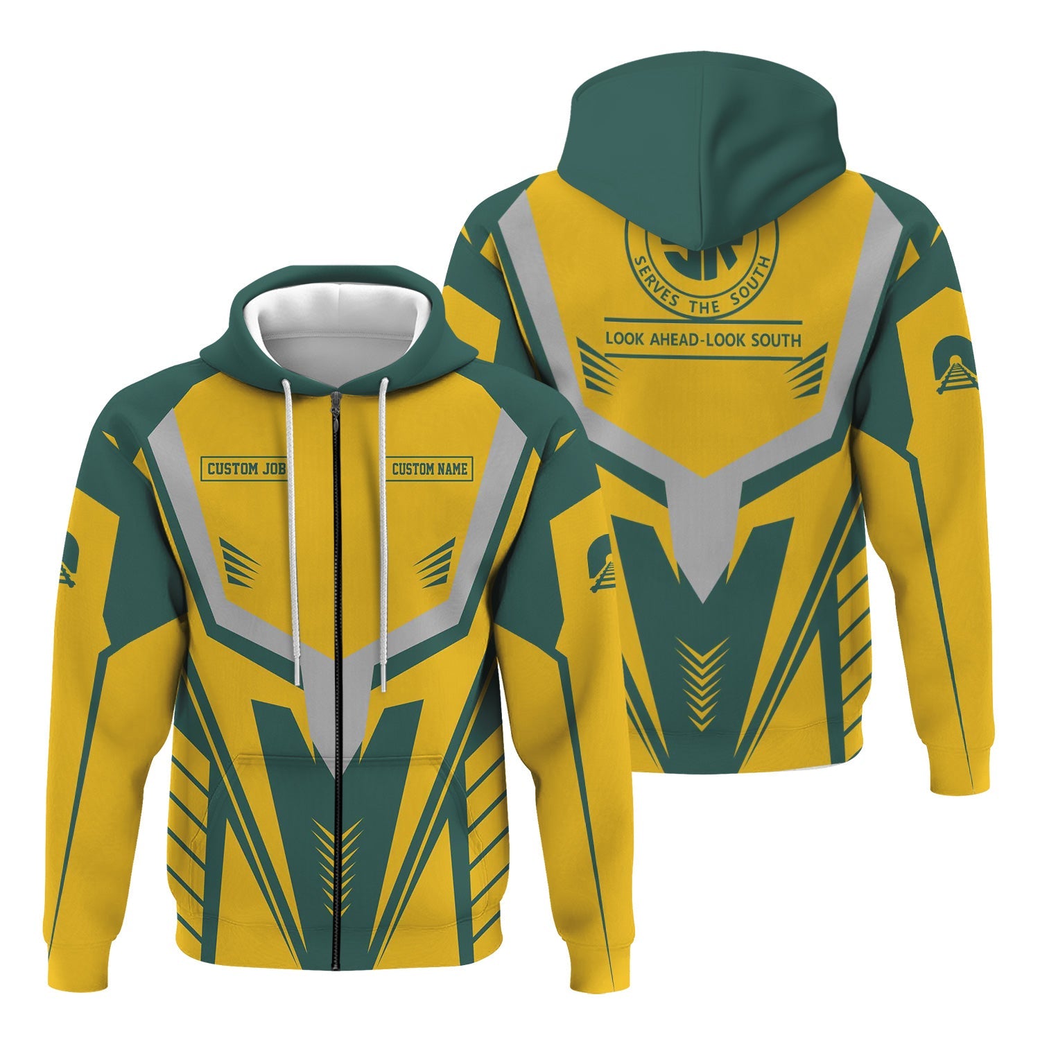 Railspirit Personalized Southern Railway U.S Hoodie Workwear-Inspired with Custom Position SOU Train Zip Up Hoodie