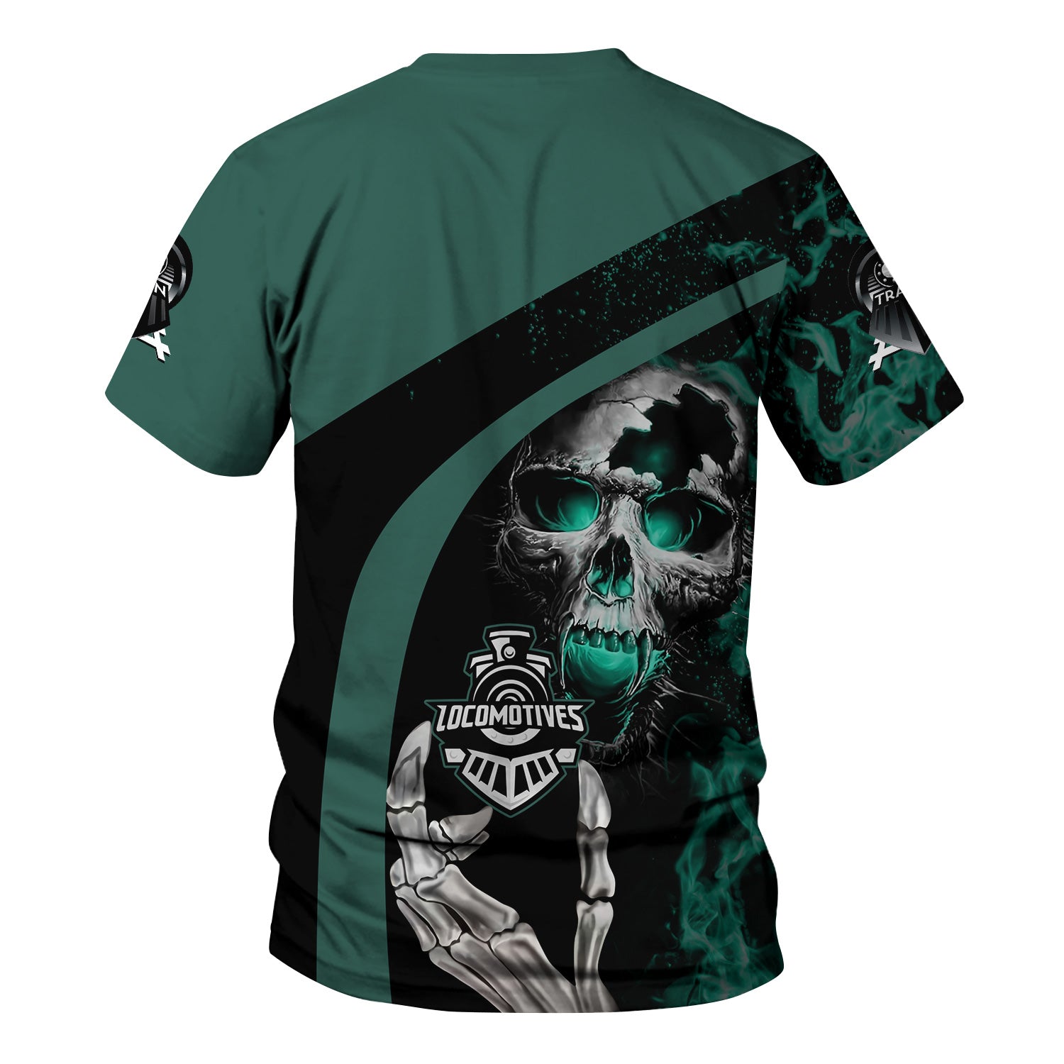Railspirit Personalized Southern Railway U.S T-Shirt Flame Skull Design SOU Train Shirt for Locomotive Fans