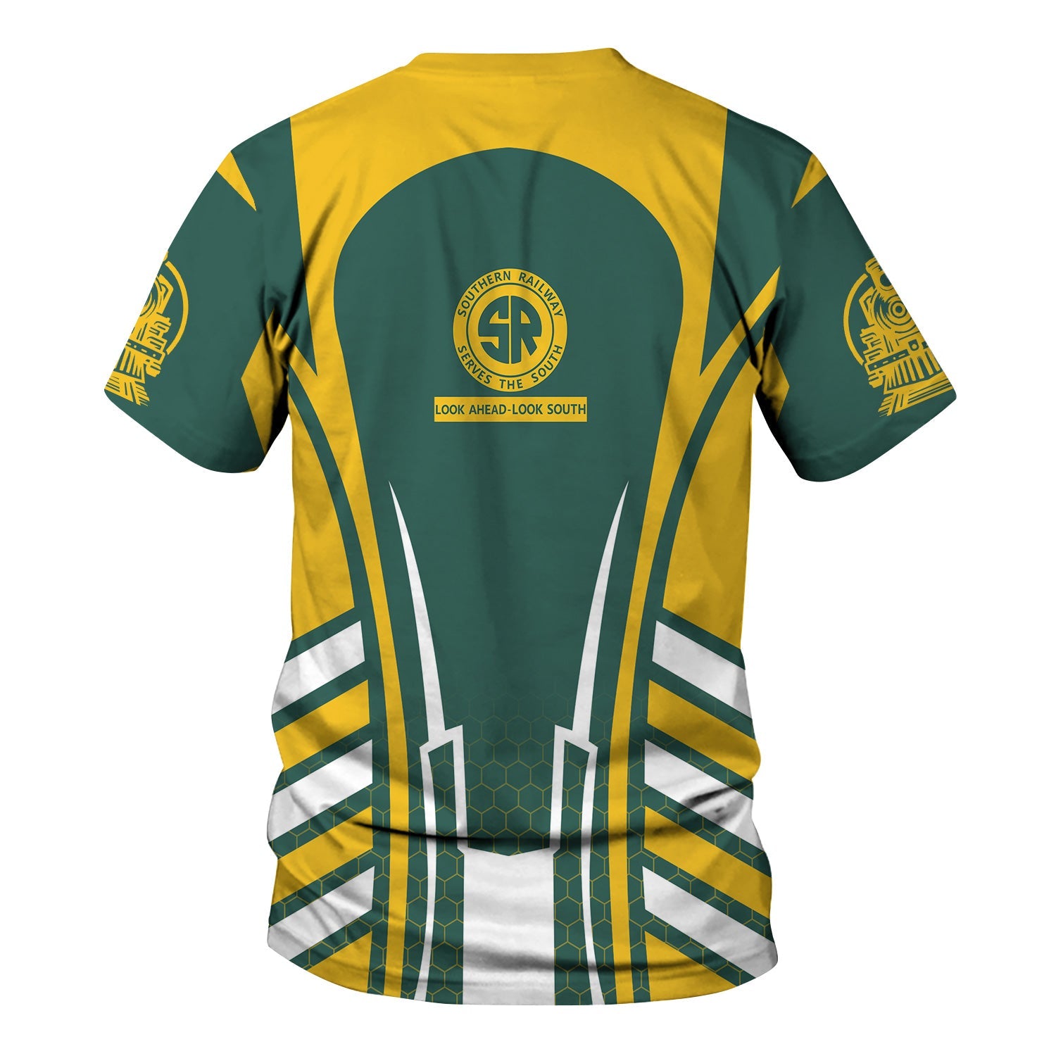 Railspirit Personalized Southern Railway U.S T-Shirt Striped Railroad Style SOU Train Shirt All Over Print