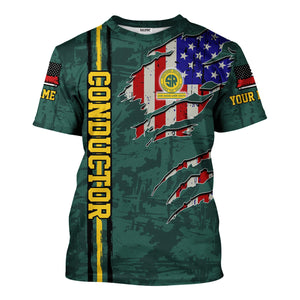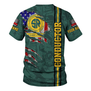 Railspirit Personalized Southern Railway U.S T-Shirt USA Flag Claw Art with Custom Job SOU Train Shirt