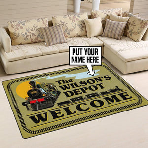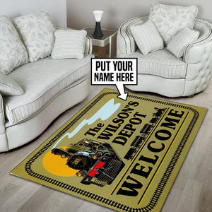Railspirit Personalized Steam Locomotive Train Depot Welcome Area Rug Gift Idea For Train Lovers