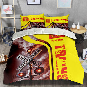 Railspirit Personalized Strasburg Railroad Bedding Set Railroad Crossing Sign Bedding Set All Over Print