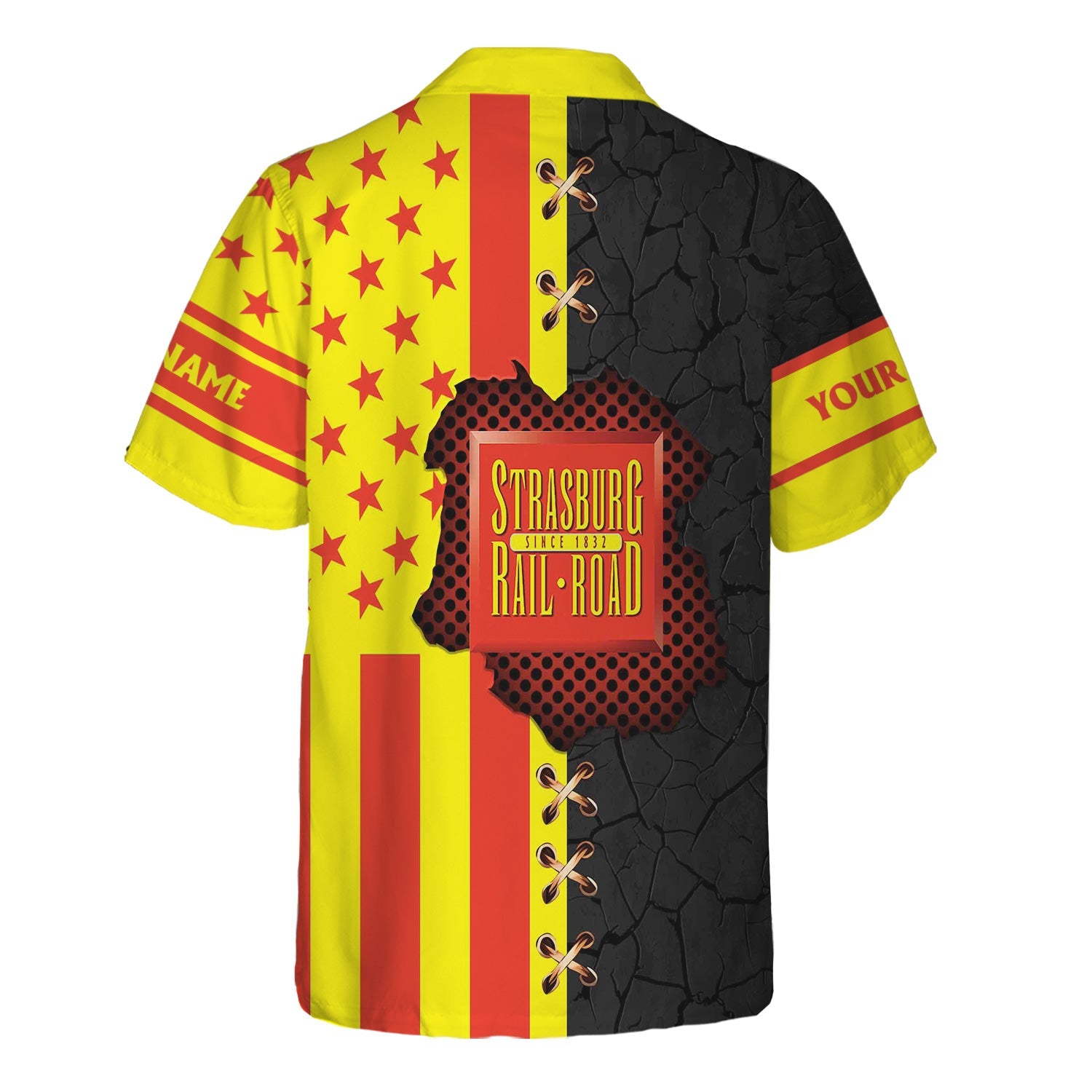 Railspirit Personalized Strasburg Railroad Hawaiian Shirt American Flag with Crack Effect Train Shirt
