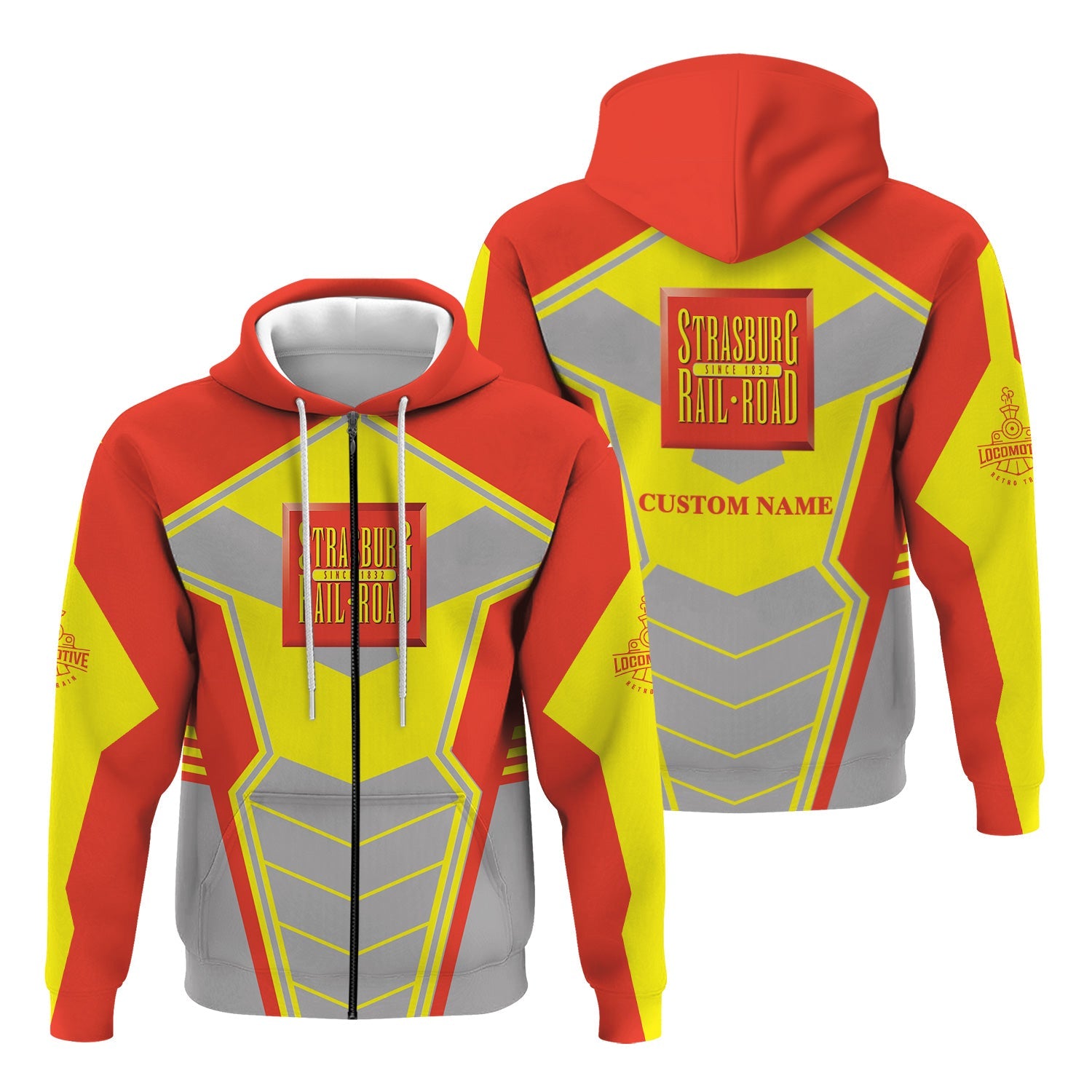 Railspirit Personalized Strasburg Railroad Hoodie Engine-Inspired Style Train Zip Up Hoodie for Railroad Fanatic
