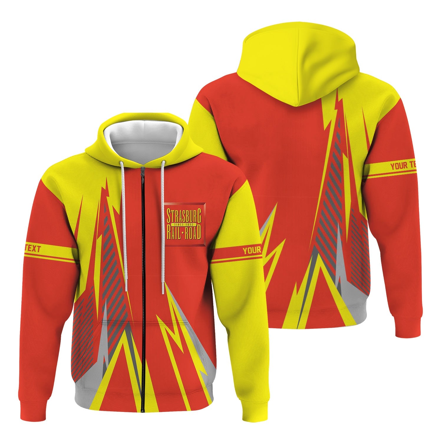 Railspirit Personalized Strasburg Railroad Hoodie Lightning-Inspired Railway Style Zip Up Hoodie For Train Lovers