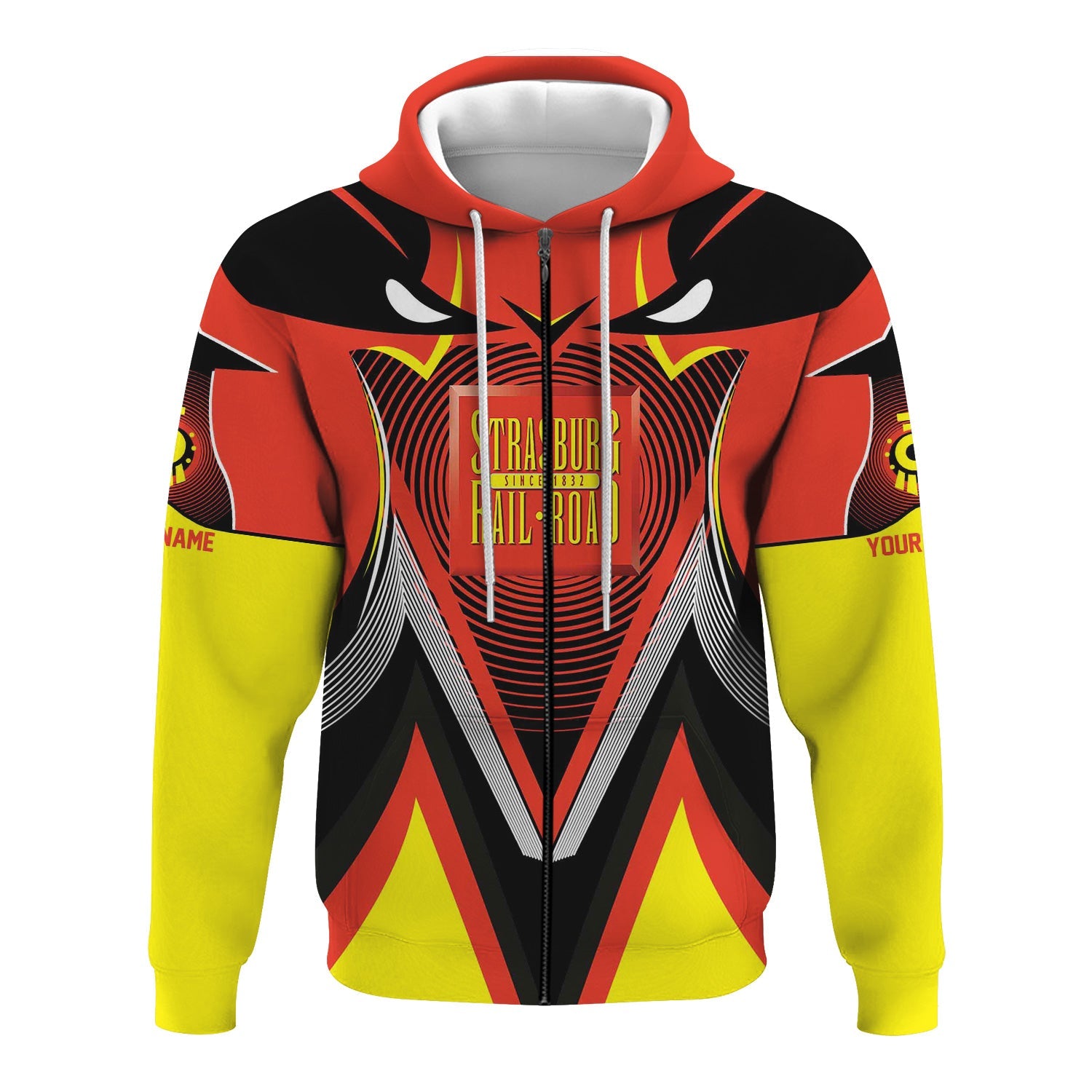 Railspirit Personalized Strasburg Railroad Hoodie Vibrant Graphic Pattern Zip Up Hoodie For Train Enthusiasts