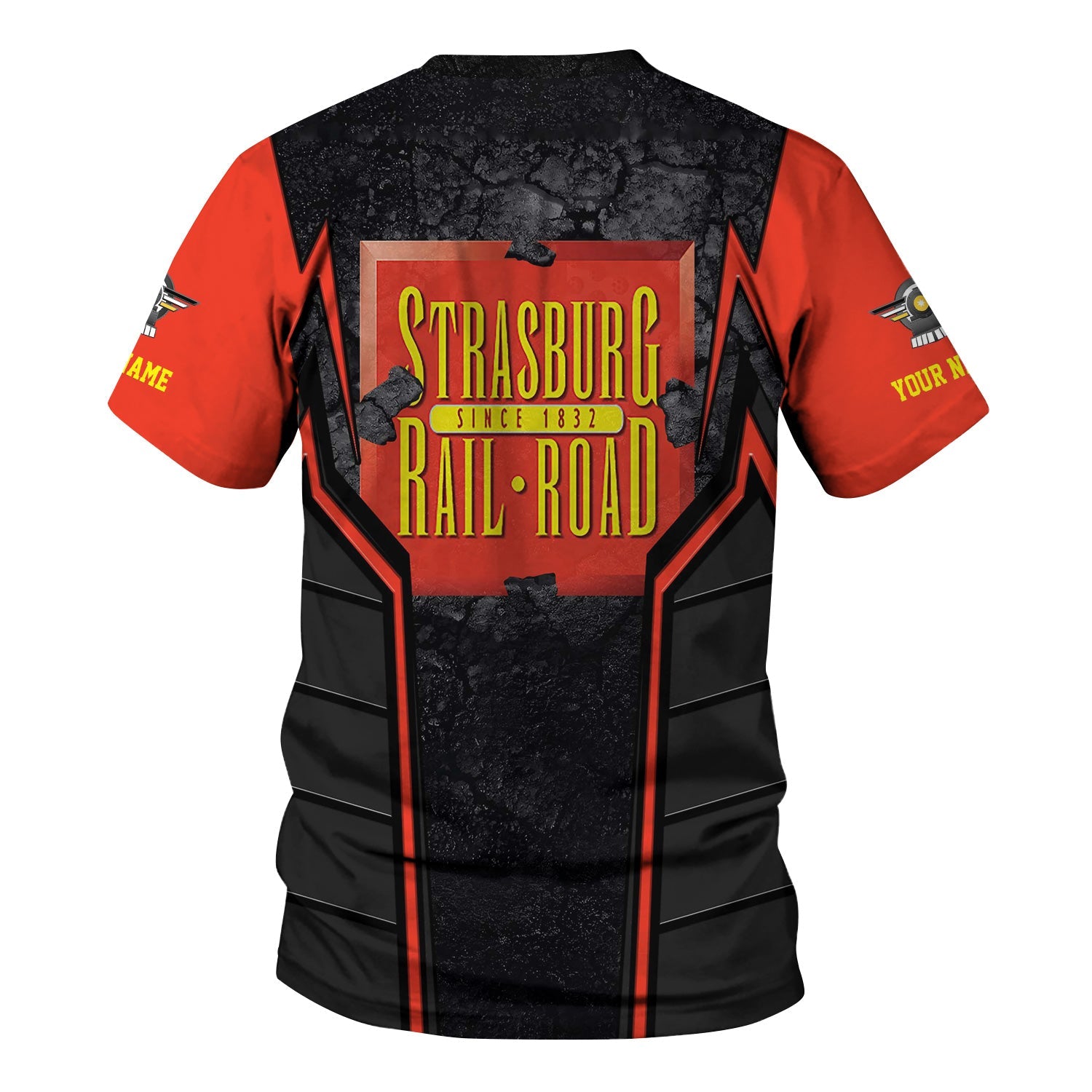 Railspirit Personalized Strasburg Railroad T-Shirt Cracked Metal Design Train Shirt for Rail Enthusiasts