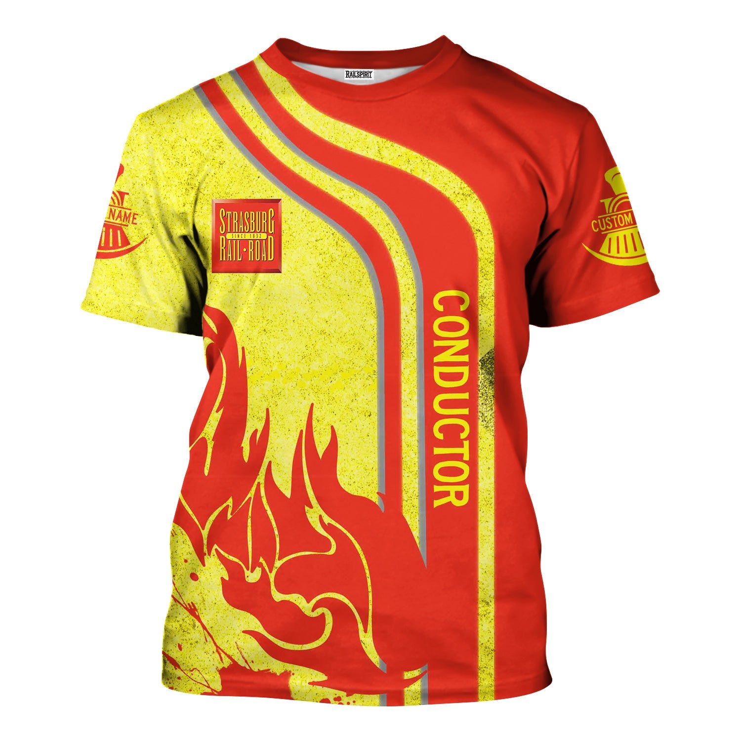 Railspirit Personalized Strasburg Railroad T-Shirt Flame Design with Custom Job Position Train Shirt