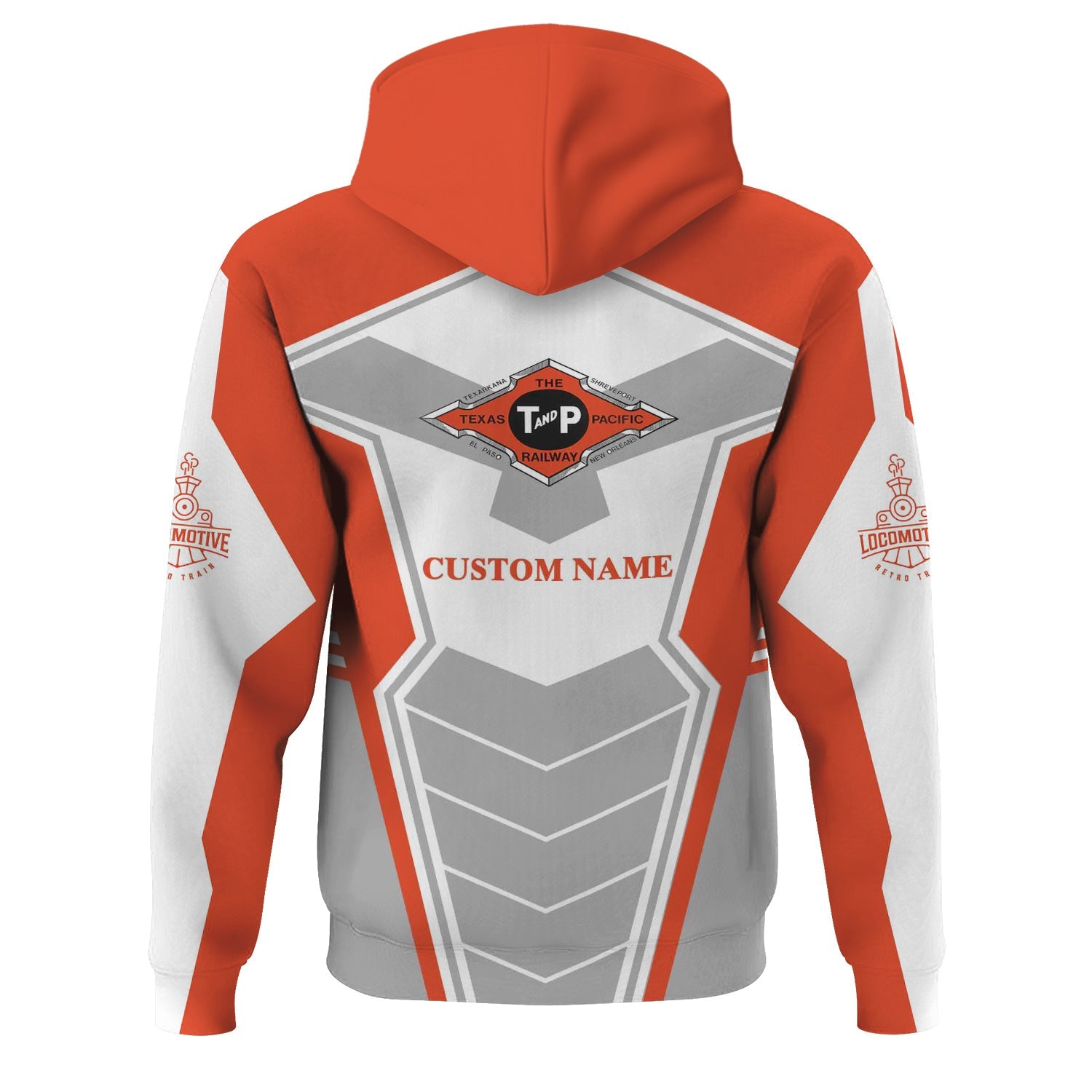 Railspirit Personalized Texas and Pacific Railway Hoodie Engine-Inspired Style Train Zip Up Hoodie for Railroad Fanatic
