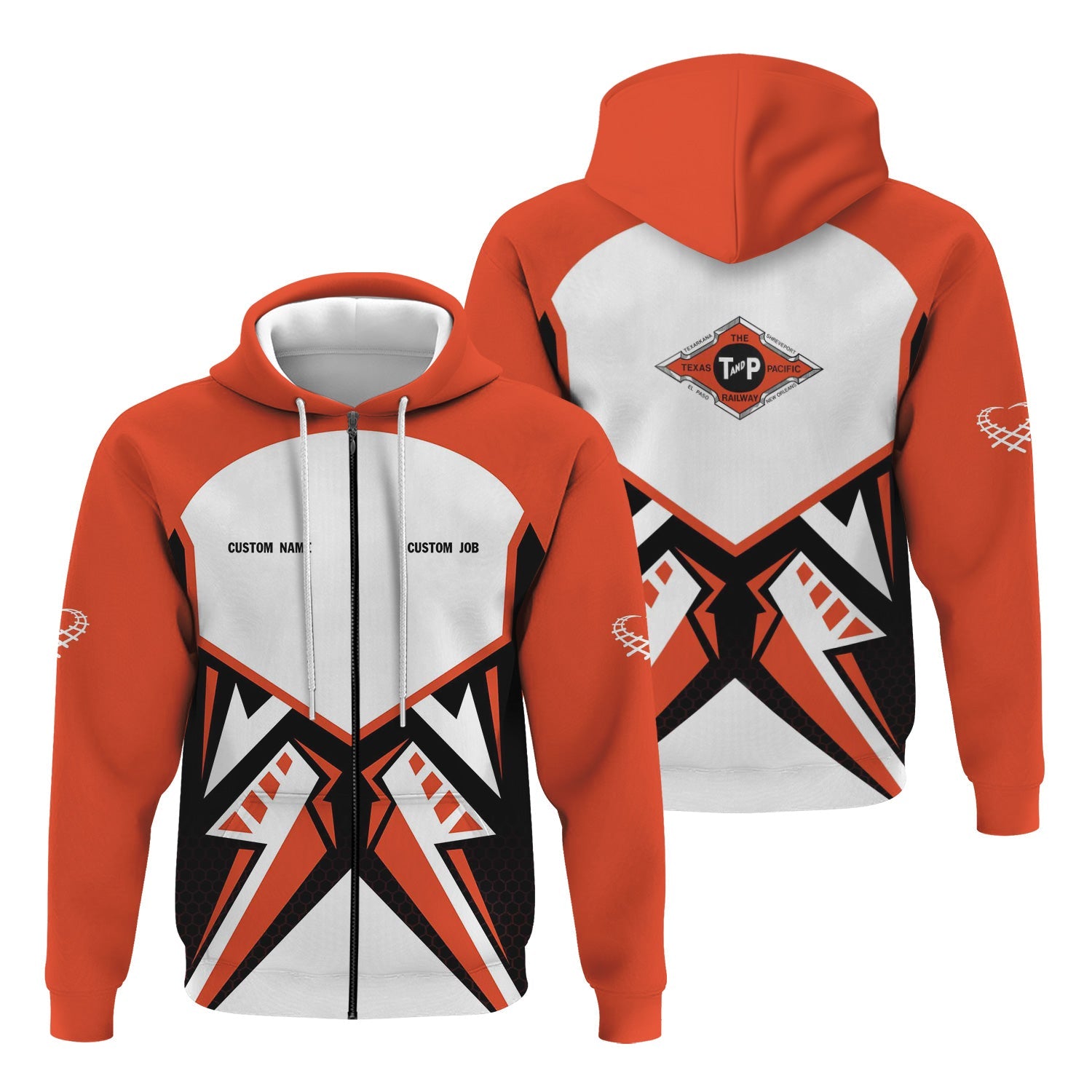 Railspirit Personalized Texas and Pacific Railway Hoodie Vibriant Style with Custom Position Train Zip Up Hoodie