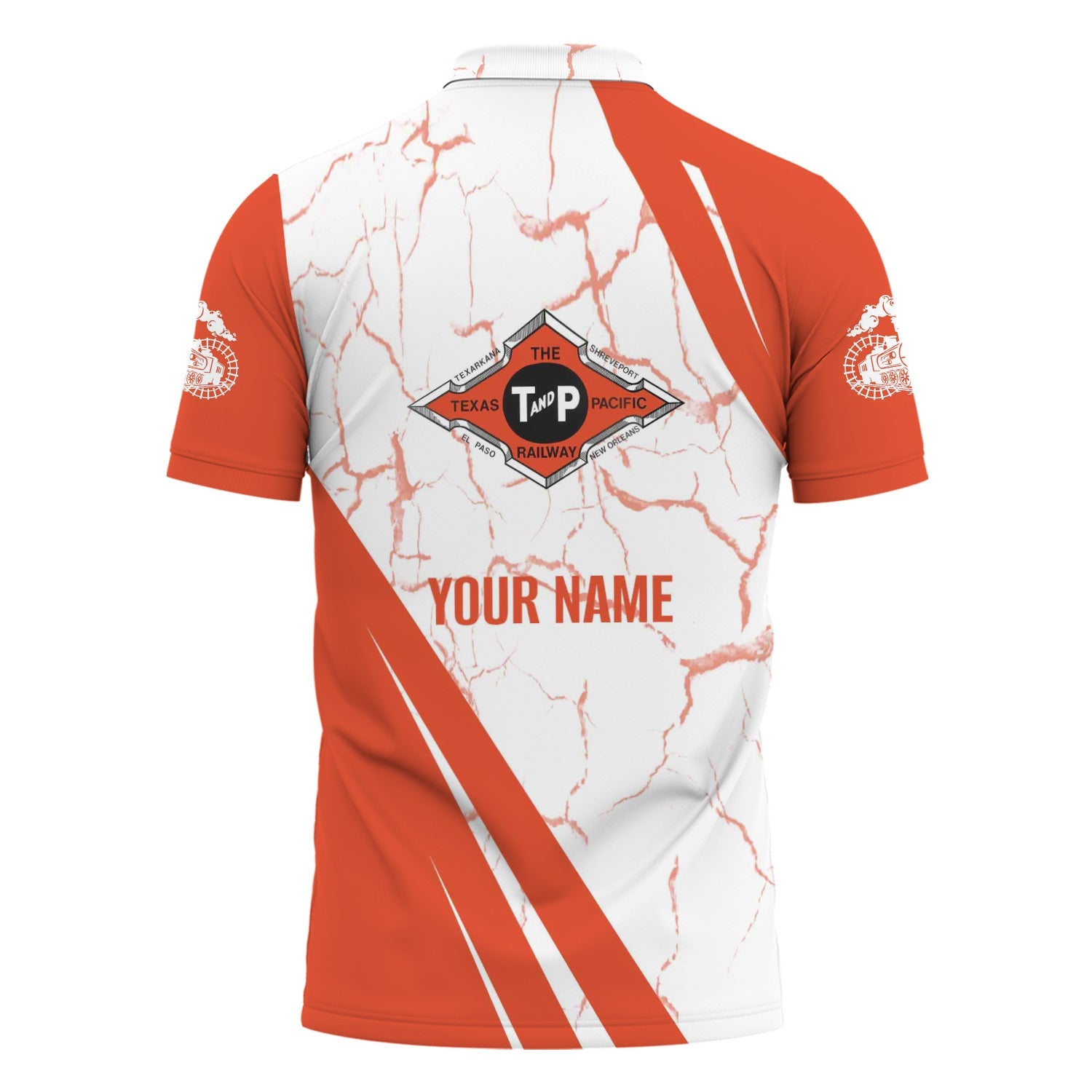 Railspirit Personalized Texas and Pacific Railway Polo Shirt Crackle Texture Style Train Shirt For Trackhead