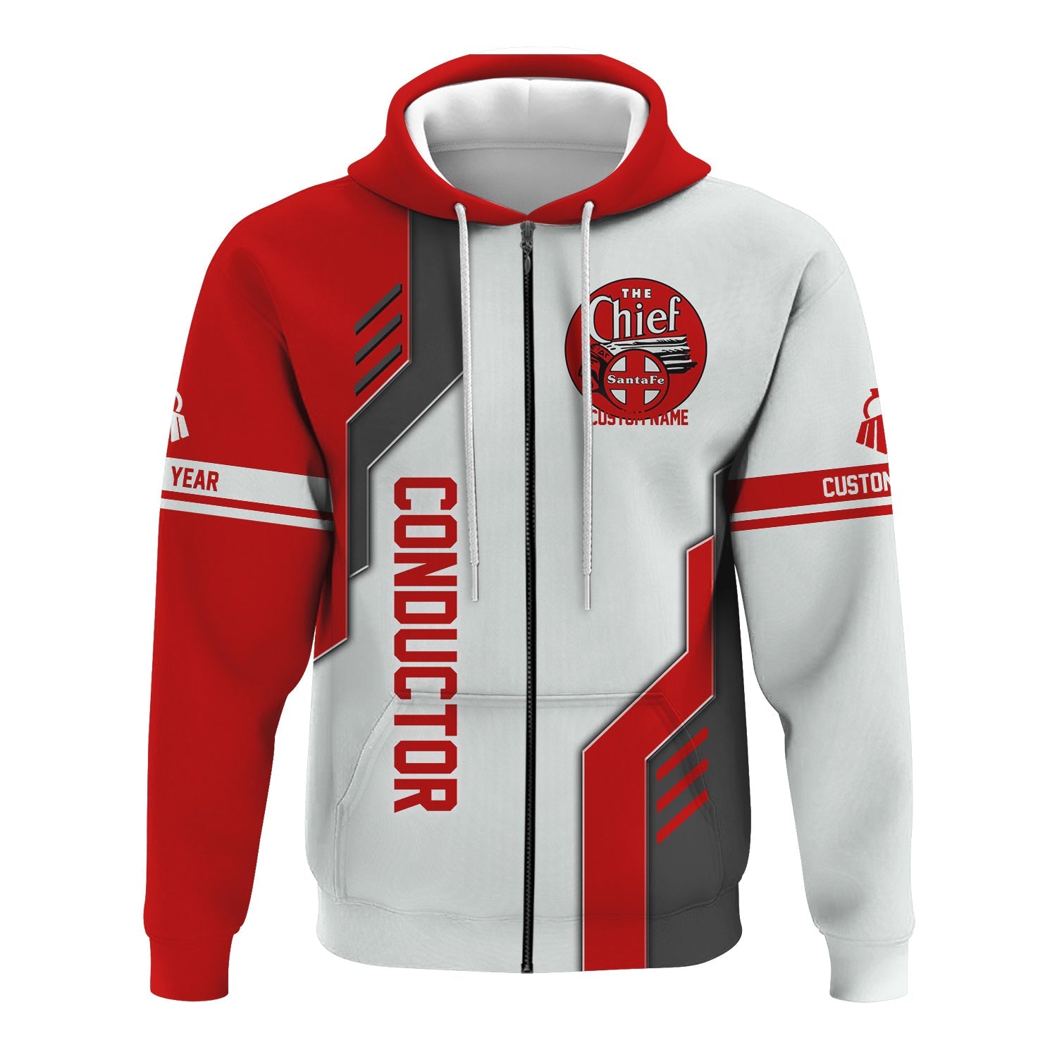 Railspirit Personalized The Chief Santa Fe Railroad Hoodie Unique Railway Style with Custom Job Train Zip Up Hoodie