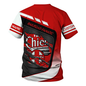 Railspirit Personalized The Chief Santa Fe Railroad T-Shirt Ripped Texture Style Train Shirt For Railroad Fanatic