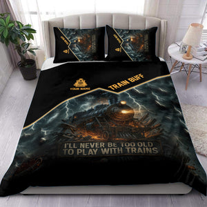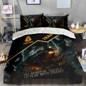 Railspirit Personalized Train Buff Bedding Set I'll Never Too Old To Play With Trains Bedding Set For Train Lovers