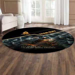 Railspirit Personalized Train Buff Round Mat I'll Never Too Old To Play With Trains Mat For Train Lovers