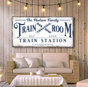 Railspirit Personalized Train Canvas Rusty Train Room and Train Station Home Decor Custom with Name Year and Location for Train Lovers